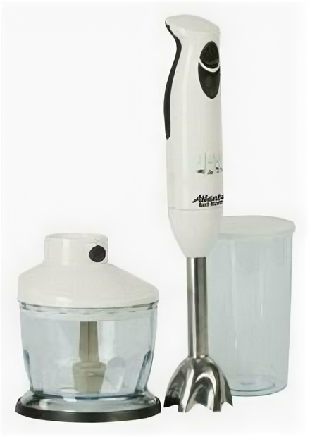 Погружной блендер Atlanta имеет две скорости работы. Насадка блендера изготовлена из высокопрочной пищевой стали. Чаша - измельчитель удобна в использовании и подходит для небольших объемов. Емкость объемом 1 литр, с крышкой, идеальна для приготовления жидкого теста, коктейлей и пюре.
