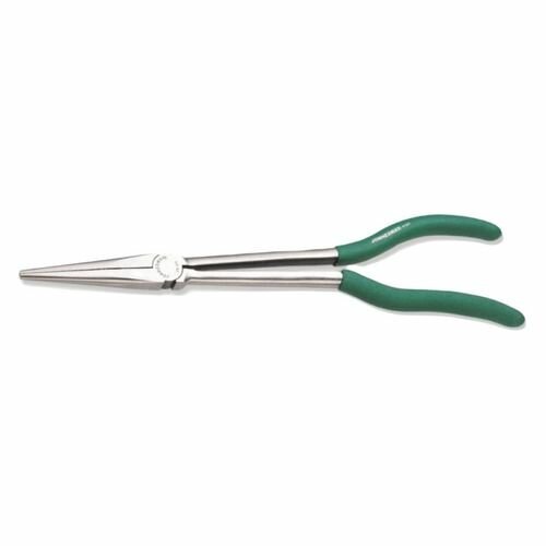 Длиногубцы этой серии представляют собой специальный инструмент, часто незаменимый для работы в труднодоступных местах. Удлиненные рукоятки инструментов также компенсируют падение усилия фиксации благодаря большему, чем в стандартном варианте, рычагу.