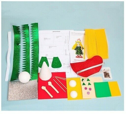 | Состав набора | пенопластовые конус (высота — 12 см), шар (диаметр — 6 см и 4 см, готовая вырубка и листы FOM EVA, зубочистки, шпажки, гвоздики-булавки, выкройка, инструкция |