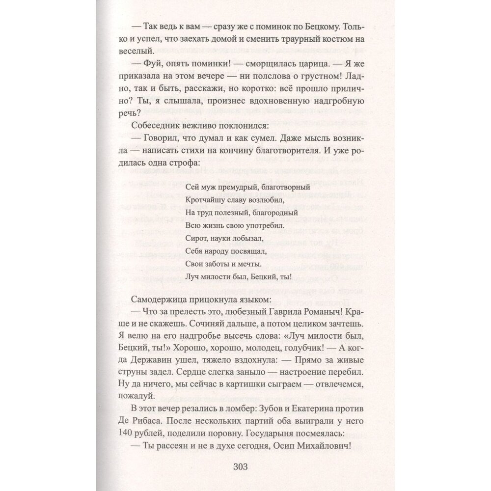 Великая эпоха Екатерины II. Время появления на исторической сцене таких фигур как Ломоносов, Суворов, Кутузов, Разумовский, Бецкой, Потемкин, Строганов. Но ни один из них не смог бы оказаться по-настоящему полезным России, если бы этих людей не ценила и не поощряла императрица Екатерина. Пожалуй, именно в этом был ее главный талант - выбирать способных людей и предоставлять им поле для деятельности. Однако, несмотря на весь ее ум, Екатерину нельзя сравнить с царем Соломоном на троне: когда она вмешивалась в судьбу подданных, особенно в делах сердечных, то порой вела себя не слишком мудро. Именно такой предстает Екатерина Великая на страницах повестей, составивших этот сборник - повестей о выдающихся людях екатерининского века и их отношениях с правительницей, которая зачастую всего лишь женщина.