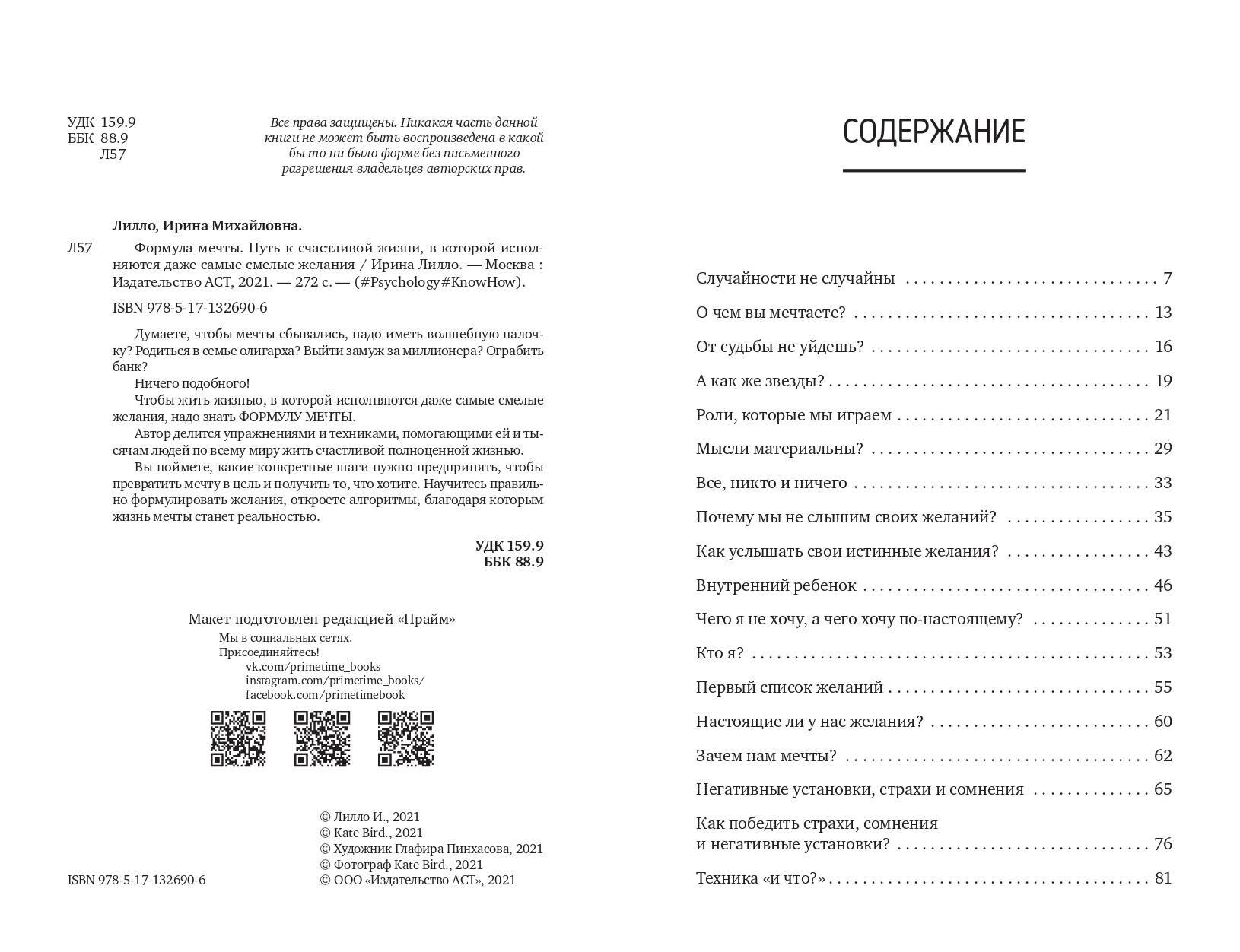 Формула мечты. Путь к счастливой жизни в которой исполняются даже самые смелые желания (Ирина Лилло); Издательство АСТ, 2021