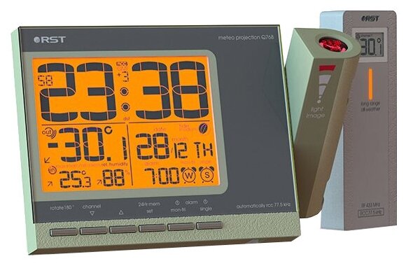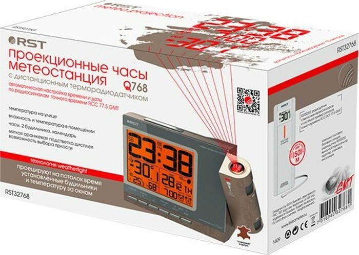 RST - это уникальные часы главной фишкой которых является проектор с повышенной четкостью изображения который проецирует время и значение температуры на стену или потолок помещения. Такая интересная возможность позволяет отображать значение текущего времени в тех местах комнаты в которые поставить обычные часы невозможно или нецелесообразно. Вам достаточно совершить небольшой поворот головы и Вы сразу узнаете время в текущий момент.