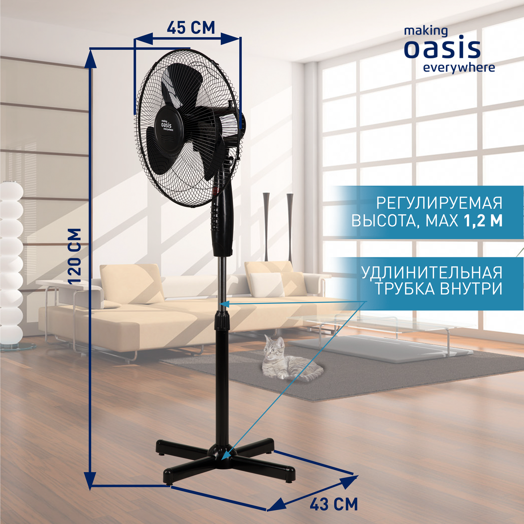 Вентилятор Oasis Black - это напольный осевой вентилятор, который обеспечит прохладу и комфорт в жаркие летние дни. С его помощью вы сможете создать приятную атмосферу в любом помещении. Он идеально подходит для использования дома, в офисе или на даче.