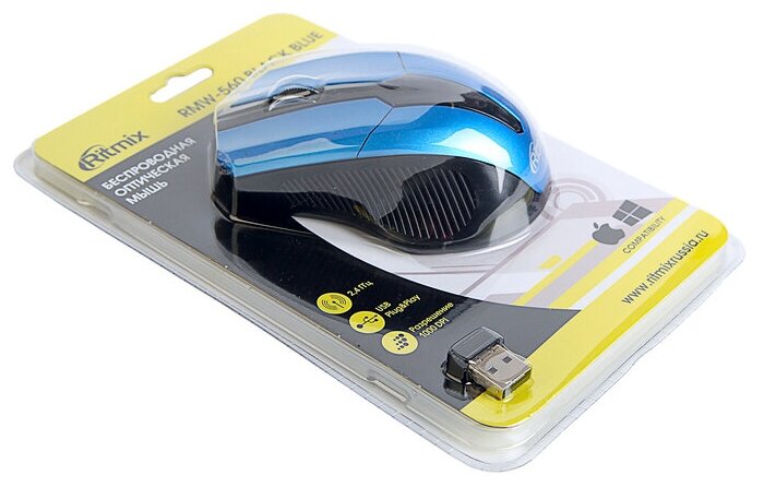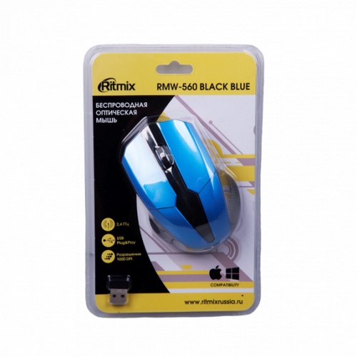 Ritmix — это полноразмерная беспроводная оптическая мышь с эргономичным дизайном. Она отличается чёткостью работы на любой поверхности и простотой в использовании (не требует драйверов). Мышь совместима с Windows и Mac OS, интерфейс подключения — USB.