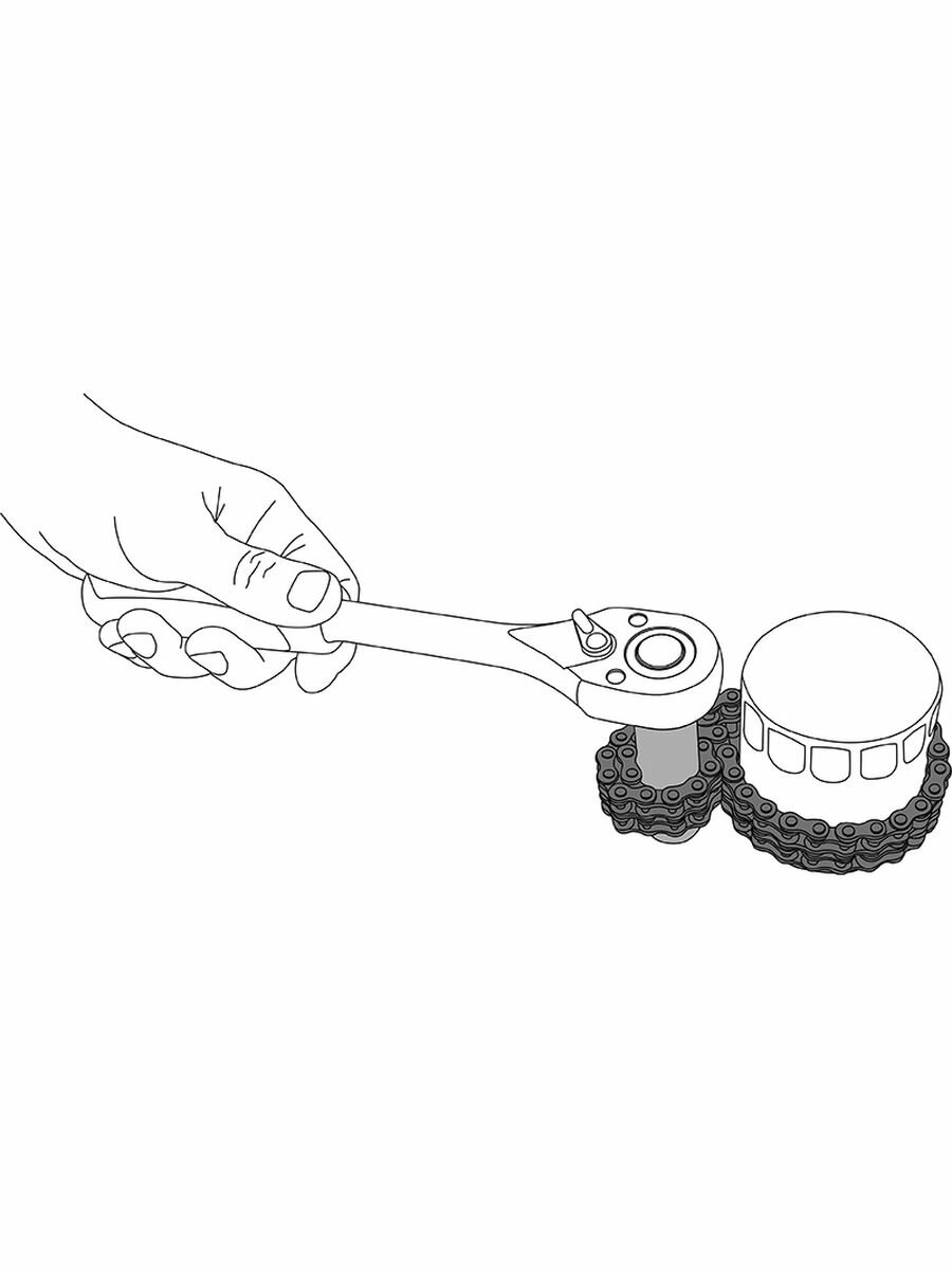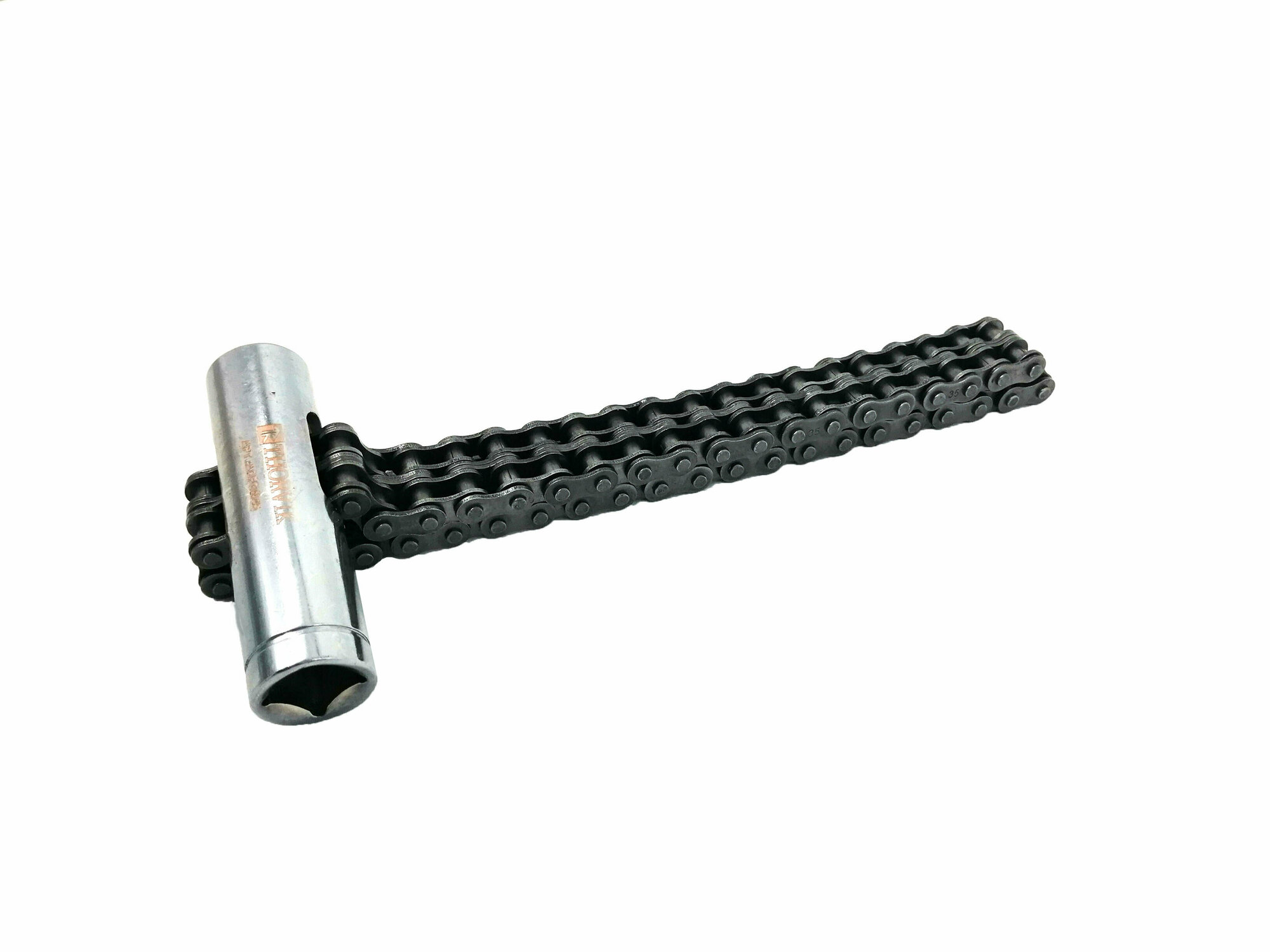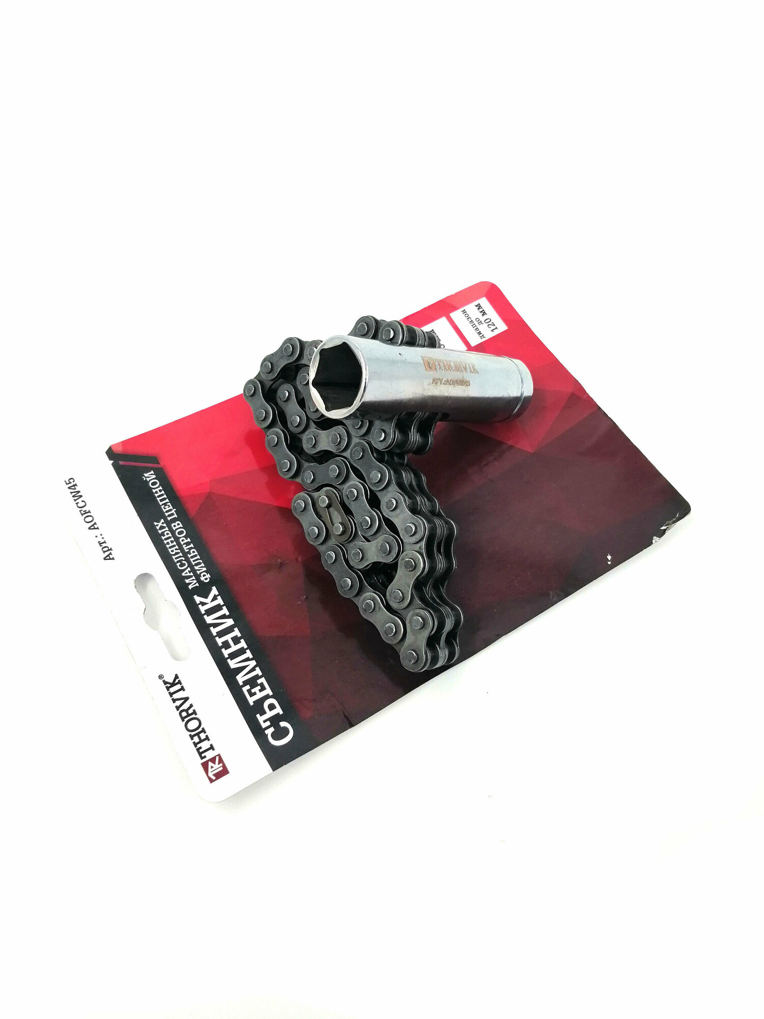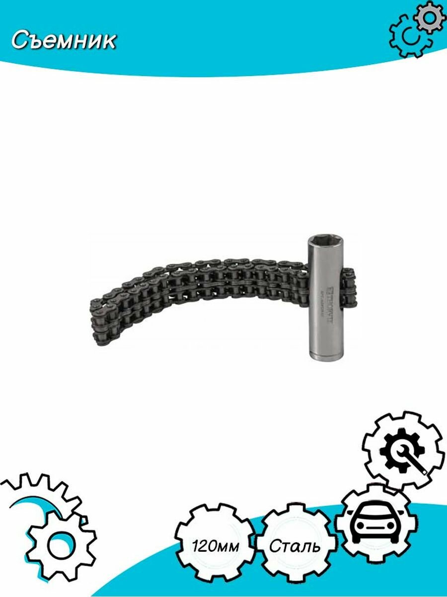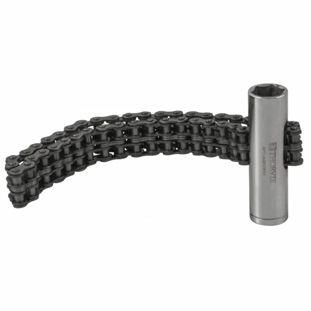 Съемник масляных фильтров цепной с приводом 1/2'DR, 16 мм HDR, с диапазоном до 120 мм THORVIK съемник корпусных масляных фильтров, В котором В качестве захвата используется цепь, наматываемая на привод С размером гнезда 1/2"DR И под ключ 16 мм HDR. Длина цепи составляет 450 мм, ЧТО позволяет использовать инструмент для обслуживания фильтров диаметром до 120 мм.