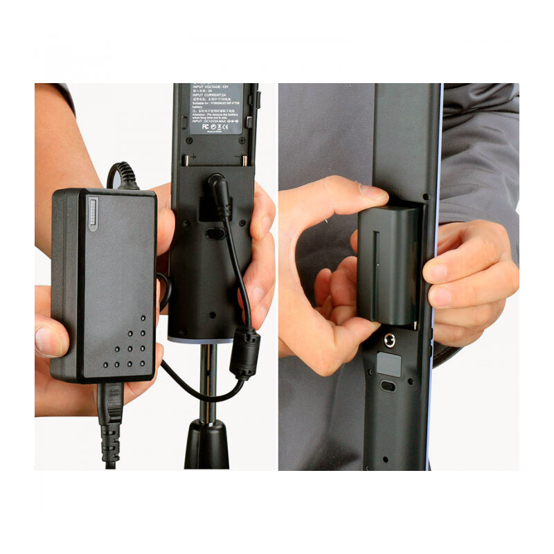 YongNuo LED YN-360S – светильник от компании Yongnuo выполненный в форме меча, основными особенностями являются: выбор любого цветового оттенка через приложение, два режима регулировки яркости: плавная и быстрая, ЖК дисплей, питание - сетевой адаптер или NP-F аккумуляторы (в комплект не входят).