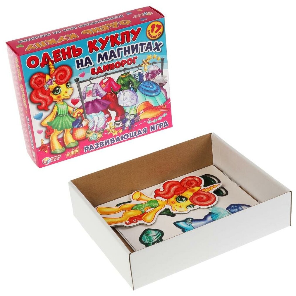 Сервис сравнения цен СкидкаГИД предлагает сравнить цены на товар «Умные игры Развивающая игра на магнитах Единорог Одень куклу»
