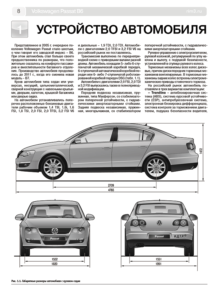 Предлагаем вашему вниманию руководство по ремонту и эксплуатации автомобилей Volkswagen Passat В6 выпуска 2005-2011 годов с бензиновыми двигателями 1,4 л (122 л.с.), 1,6 л (102 и 115 л.с.), 1,8 л (160 л.с.), 2,0 л (150 л.с.) и дизельными двигателями 1,9 л (105 л.с.), 2,0 л (140 л.с.). В издании подробно рассмотрено устройство автомобиля, даны рекомендации по эксплуатации и ремонту. Специальный раздел посвящен неисправностям в пути, способам их диагностики и устранения.