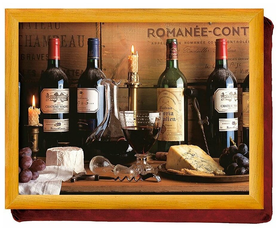 Поднос с подушкой Виноделие размером 44 х 34 см Английского бренда Creative Tops предназначен для удобной, практичной и эстетичной подачи завтрака, обеда или ужина со всеми удобствами, в кресле или автомобиле. Подносы с подушкой позволяют расположиться с максимальным комфортом при отсутствии обеденного стола. Дизайнерский рисунок подноса надежно защищен термостойким ламинированным покрытием, которое выдерживает температуры до 100°С. Поднос с подушкой очень легко очищаются, достаточно протереть его влажной салфеткой. Поднос выполнен из МДФ, легкого и стойкого к высоким температурам, экологически чистого материала. От традиционного данный поднос выгодно отличается тем, что подушка принимает форму ног, позволяя с удобством наслаждаться трапезой. Поднос с подушкой также очень удобно использовать для работы на ноутбуке или планшете. Качественная английская продукция, великолепные дизайны и умеренные цены залог успеха бренда Creative Tops на российском рынке.