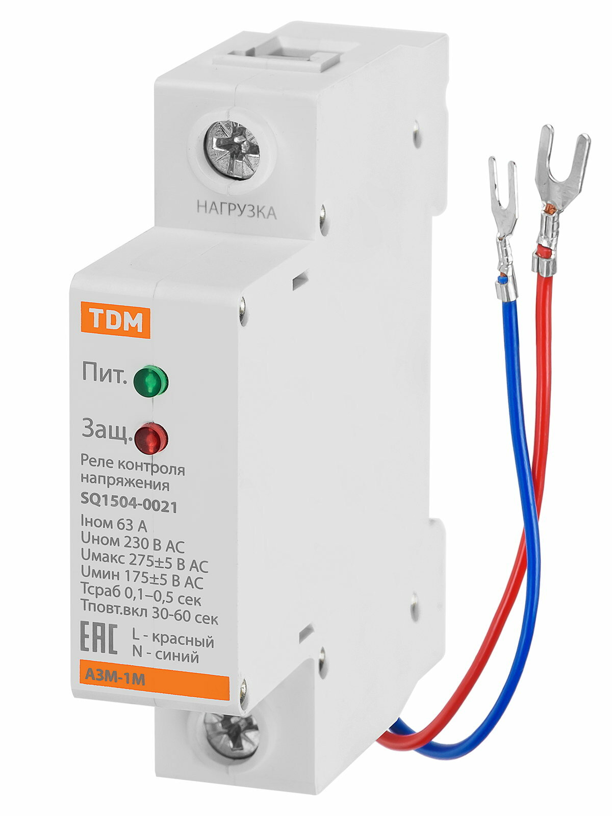 - Однофазное реле напряжения АЗМ-1М на 63 А (компакт)