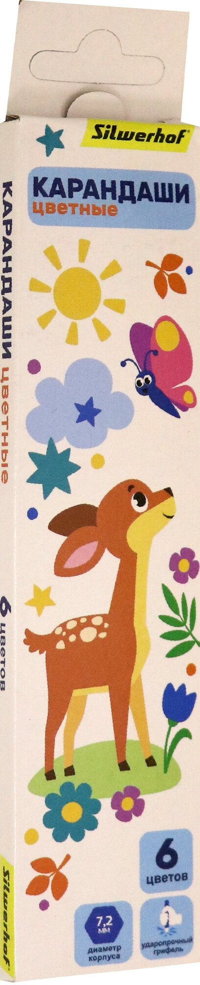 Упаковка карандашей цветных SILWERHOF Веселые друзья шестигранные 7.2мм 6 цв. коробка европодвес 8 шт./кор.