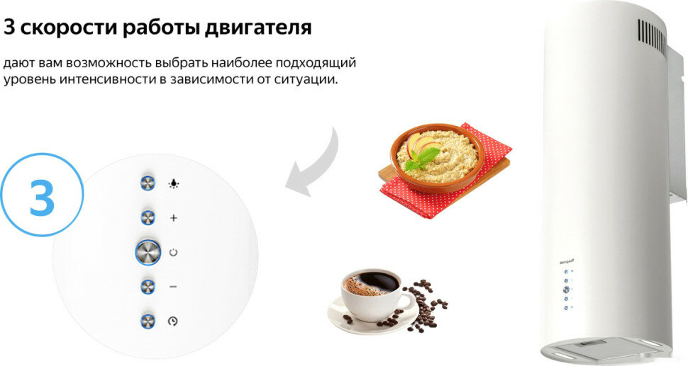 Каминная вытяжка Weissgauff Gracia WH белый, количество двигателей 1, режим работы отвод/циркуляция, кнопочное управление, алюминиевый жироулавливающий фильтр (427091)