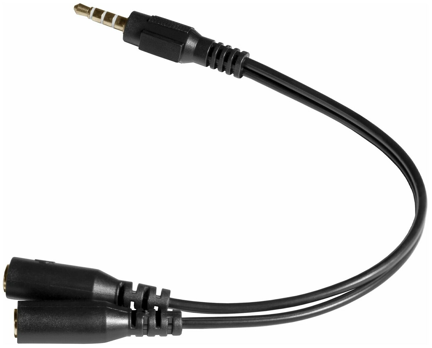 Переходник-соединитель двух 3,5-мм разъемов (наушник и микрофон) в комбинированный 4-pin аудиоразъем.