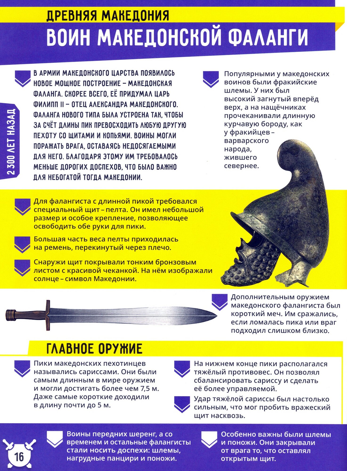 Под обложкой этой книги вас ждут 250 невероятных фактов о древних воинах, с которыми можно отправиться на поле боя, в военный лагерь или рыцарский замок. Благодаря дополненной реальности вы не только прочитаете о старинном оружии, но и увидите его в действии. Скачайте бесплатное приложение и понаблюдайте за поединком Гектора и Ахиллеса, а также узнайте ещё больше фактов о каждом воине из книги.