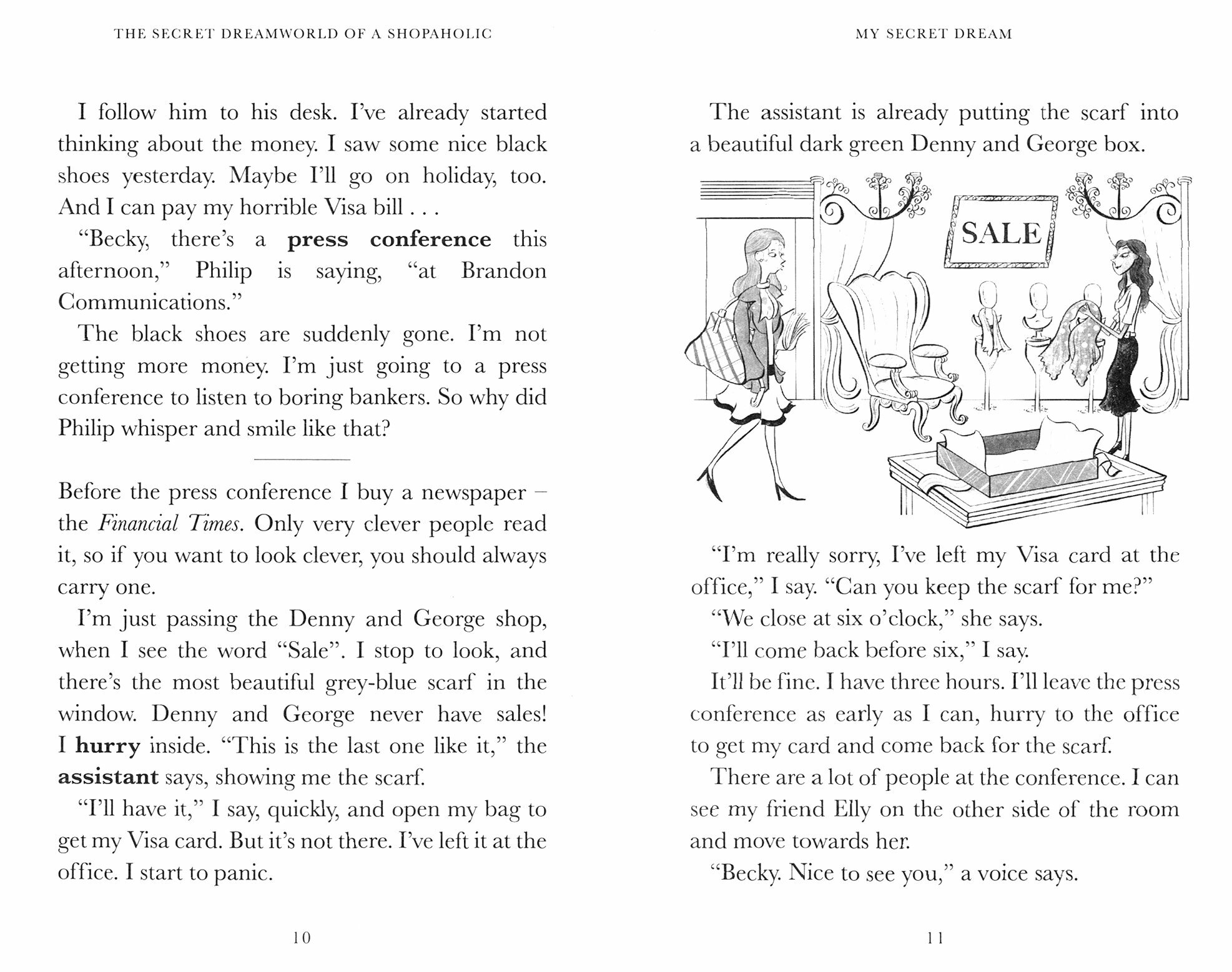 Becky lives with her rich friend, Suze. Suze and her friends have lots of money, and they eat in expensive restaurants. Becky does not have as much money as Suze. Becky knows that she should stop spending money, but she can't stop shopping.