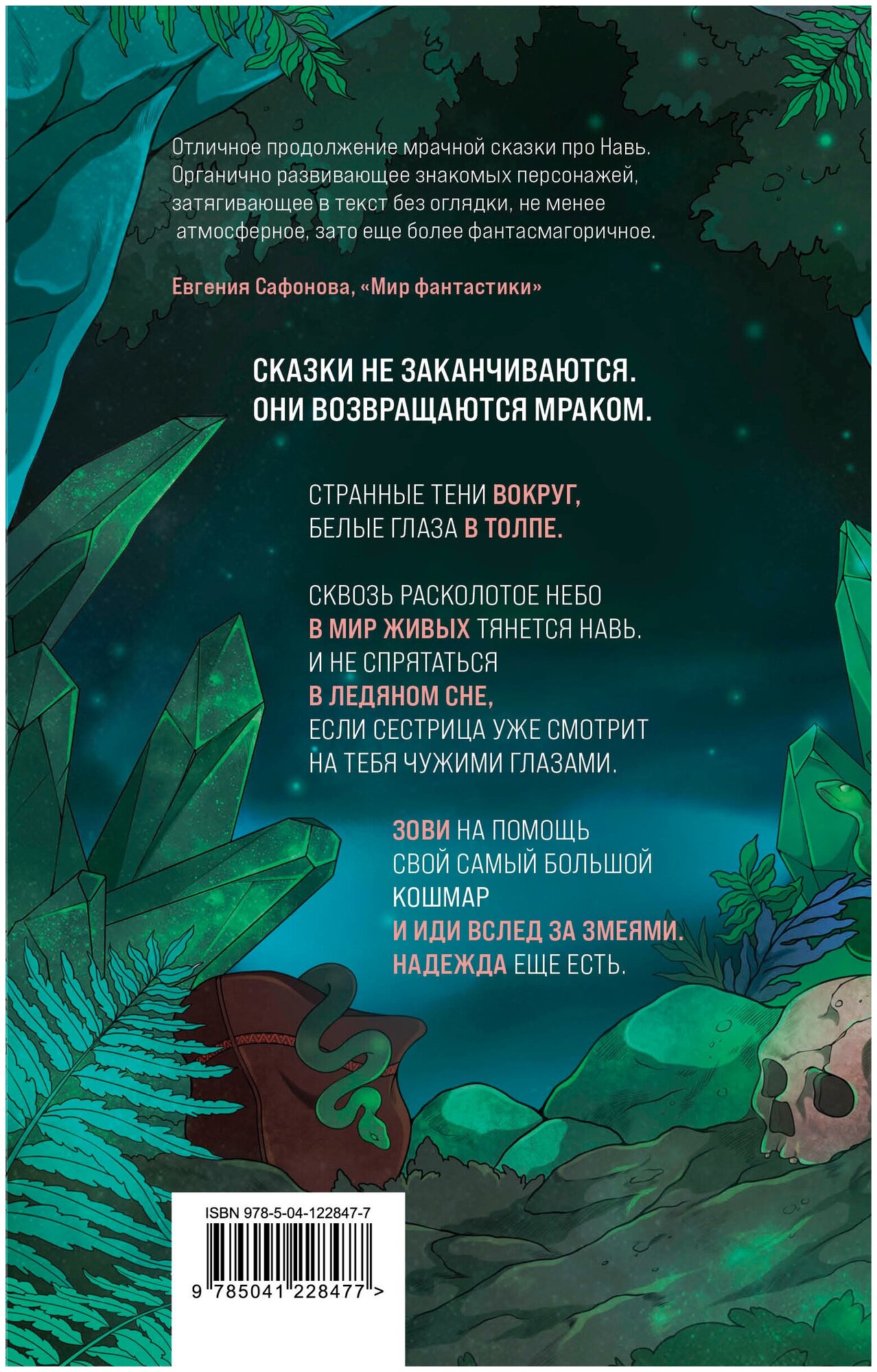 Изумительно красивая книга о древних богах, духах и сестринской любви. Это вторая часть темной сказки о мертвом царстве. Марья пытается вернуть сестру. Путь ее не менее труден, чем некогда сестринский: чужие миры, хтонические создания, загадки и испытания. Только со спутником, по крайней мере, в начале, ей повезло меньше, чем Анне. Автор снова обращается к славянской мифологии и русским народным сказкам, расширяет мир, и если в "Иди через темный лес" центральным символом был мертвый лес, то в "Вслед за змеями" - камень.