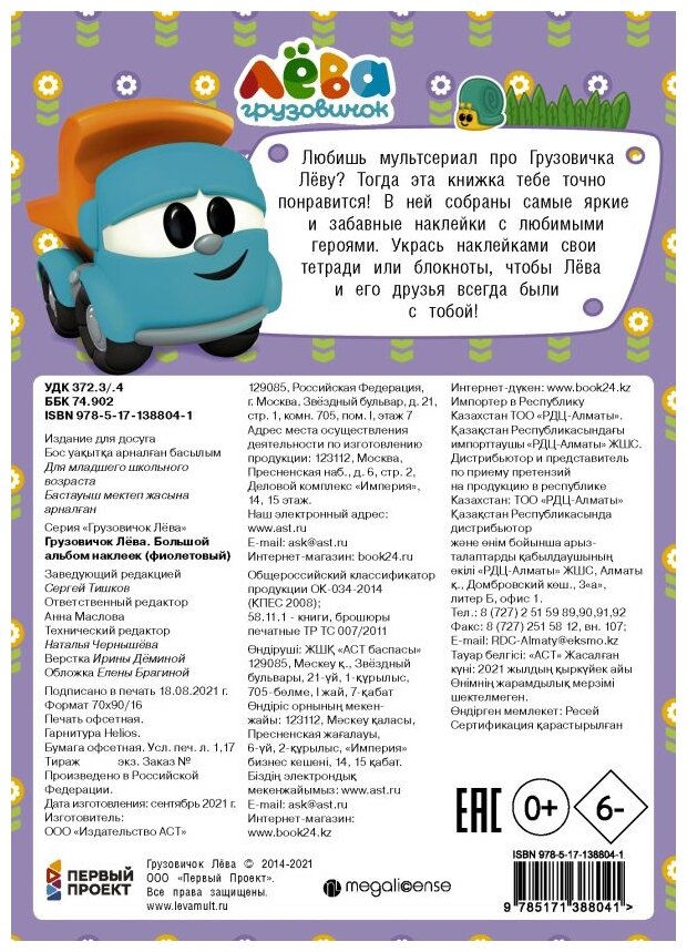 Грузовичок Лёва. Большой альбом наклеек (фиолетовый) (Фонд исследований исламской культуры); АСТ, 2021