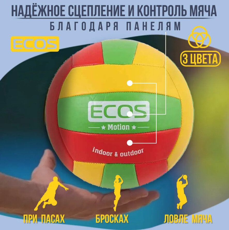 Волейбол является одним из самых популярных видов спорта на Земле. Эта игра популярна как среди мужчин, так и среди женщин. Самым главным атрибутом волейбола является волейбольный мяч. Как и любой другой мяч, волейбольный представляет собой сферическую конструкцию, состоящую из внутренней резиновой камеры, которая спрятана под натуральной или синтетической кожей.Мяч волейбольный ECOS MOTION VB103Волейбольный мячТрехцветный;Машинная сшивка;Материал – ПВХВес - 270 грОфициальный размер и вес 5;Дополнительная информация: Инструкция по уходу за мячом и правильной подкачке в прикрепленных файлах. Обязательно к ознакомлению!