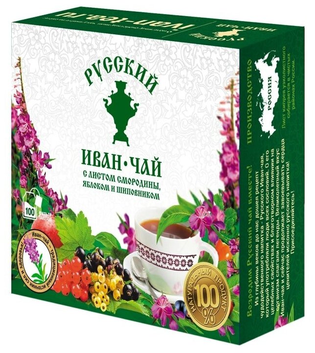| Состав | листья кипрея ферментированные, листья смородины, яблоко, шиповник |