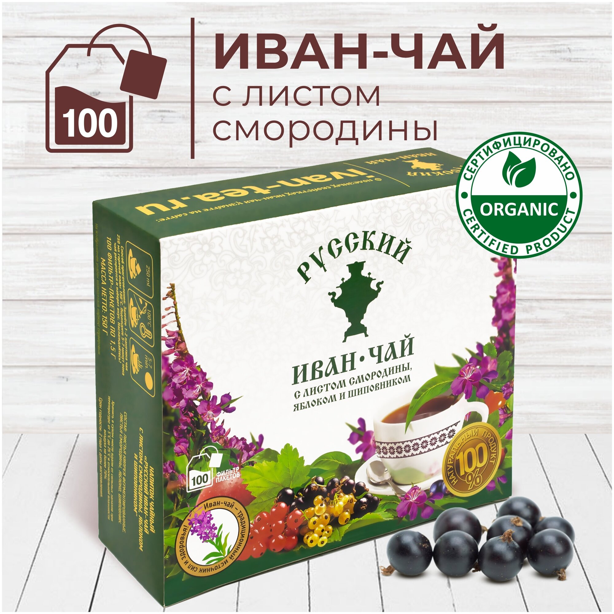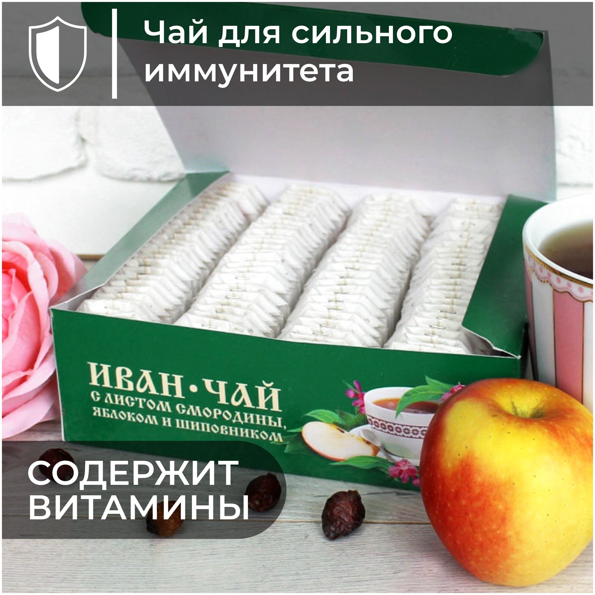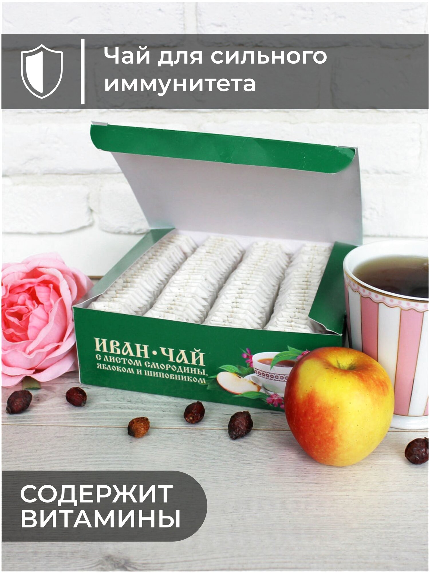 Напиток чайный Русский Иван Чай с листом смородины яблоком и шиповником 100пак Чага чай