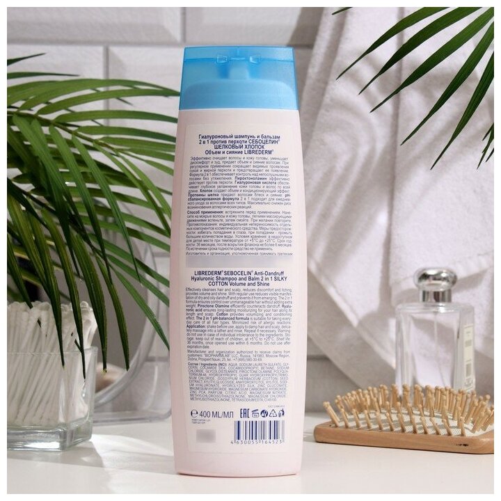 Librederm Гиалуроновый шампунь и бальзам Sebocelin 2 в 1 против перхоти "Шелковый хлопок. Объем и сияние" 400 мл (Librederm ) (ЭХ99989416972)