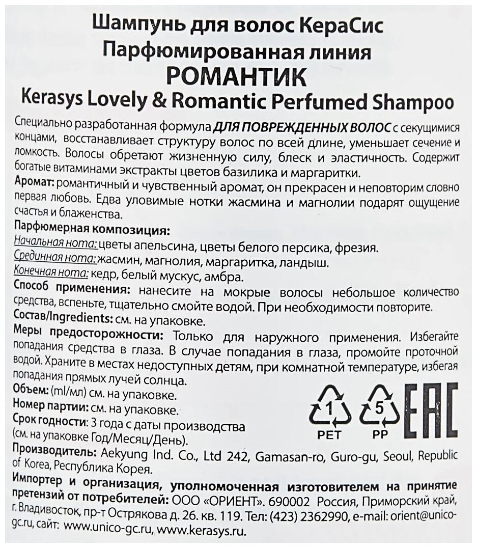 | Способ применения | на влажные волосы нанесите небольшое количество шампуня, мягко массируя до образования пены. Хорошо промойте волосы, при необходимости повторите процедуру. Для более выраженного эффекта использовать вместе с бальзамом для волос. |