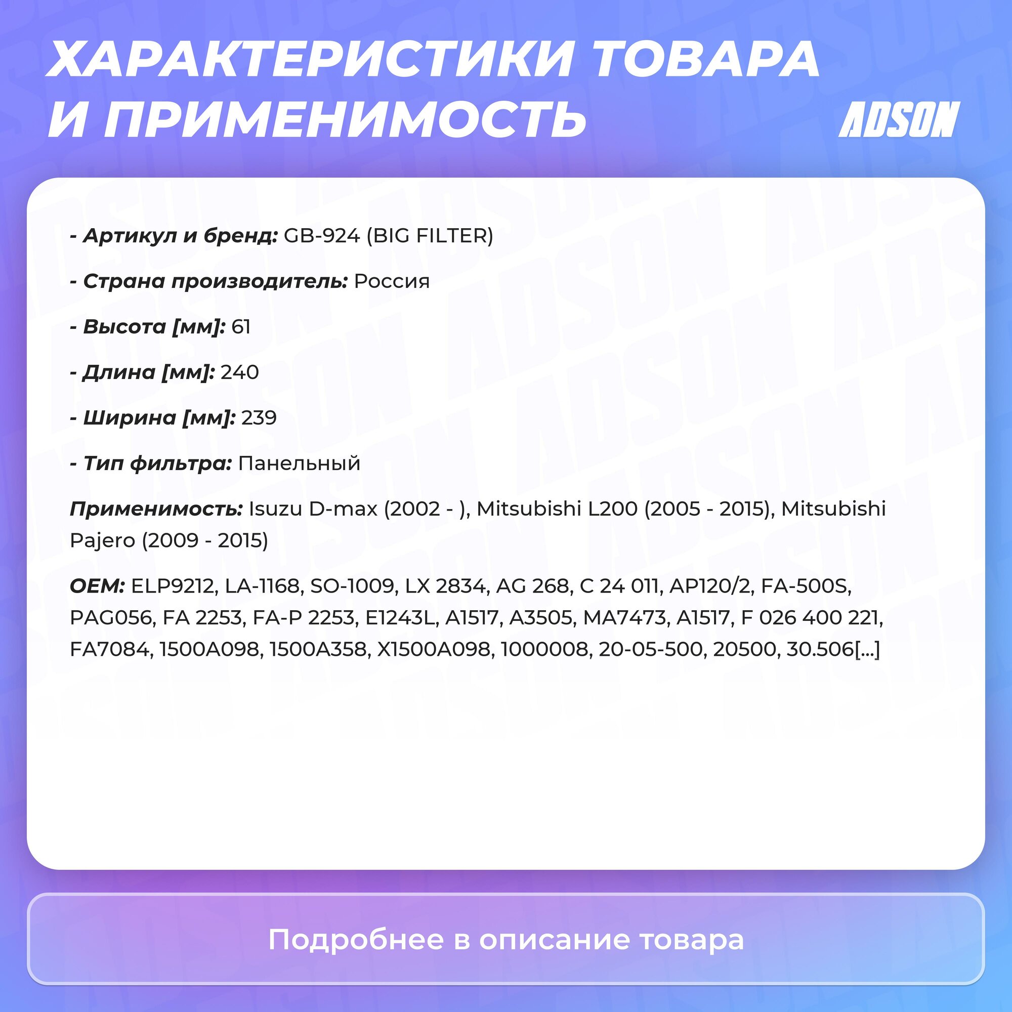 Сервис сравнения цен СкидкаГИД предлагает сравнить цены на товар «Воздушный фильтр BIG Filter GB-924»