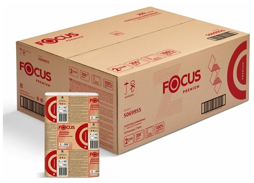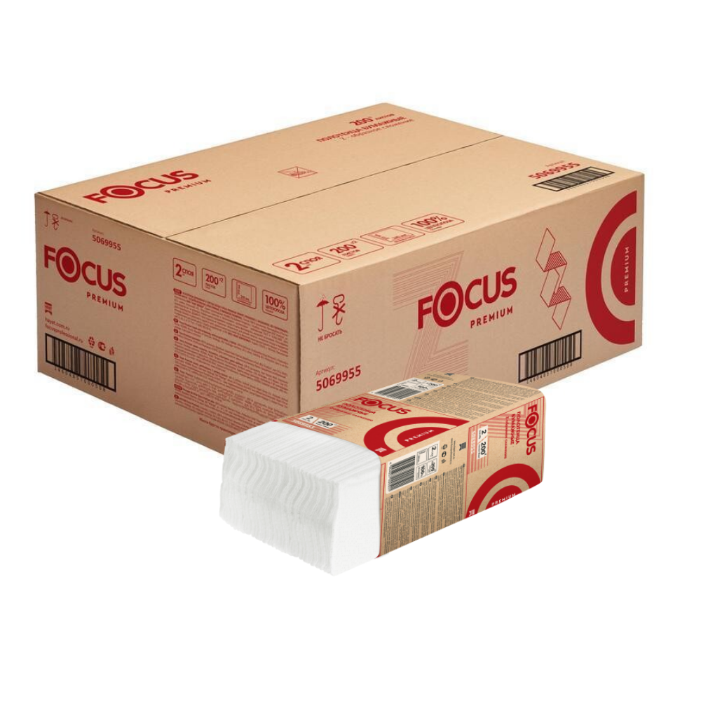 Полотенца бумажные Focus Extra 2-хслойная 200лист. белый (упак.:20шт) (5048672)