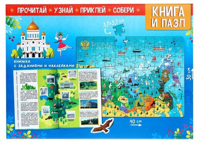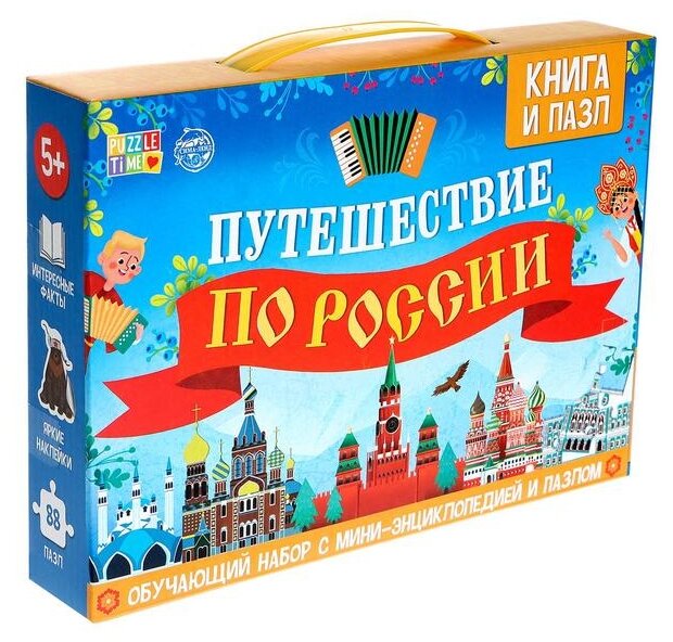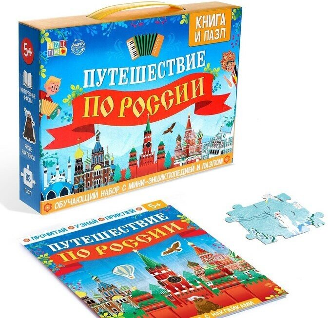 Обучающий набор "Путешествие по России" (мини-энциклопедия + пазл 88 элементов); Буква-ленд, 2021