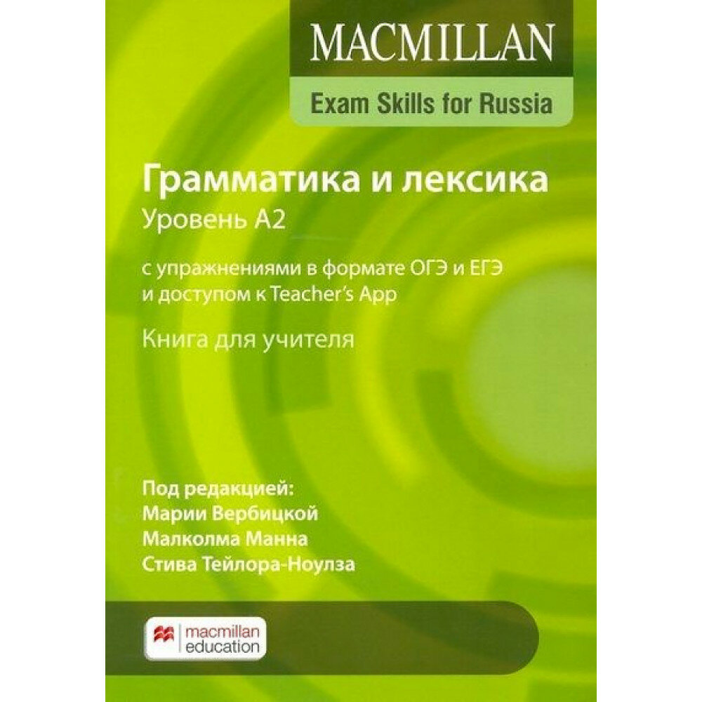 Exam Skills for Russia. Грамматика и лексика. Уровень А2. С упражнениями в формате ОГЭ и ЕГЭ и доступом к Teacher`s App. Книга для учителя (Mann Malcolm , Taylore-Knowles Steve , Verbitskaya Maria); Macmillan Education, 2021