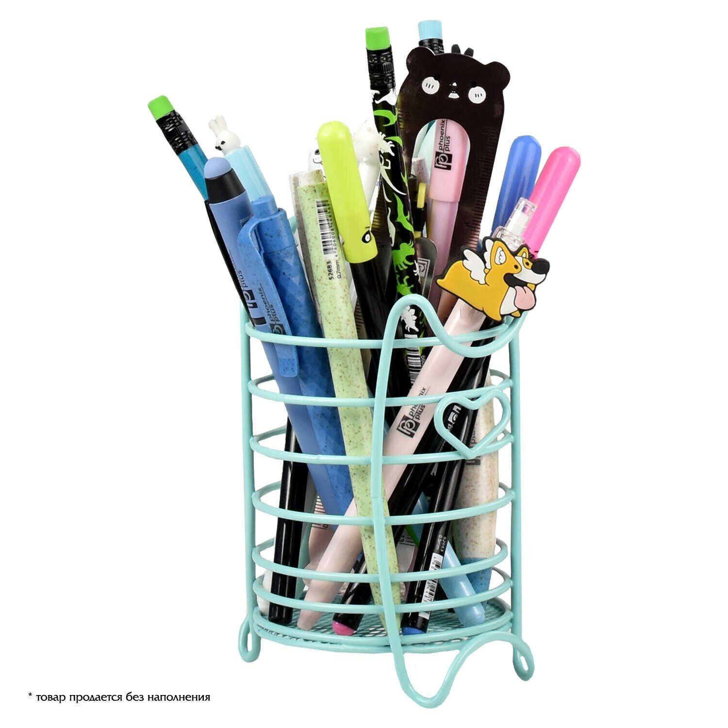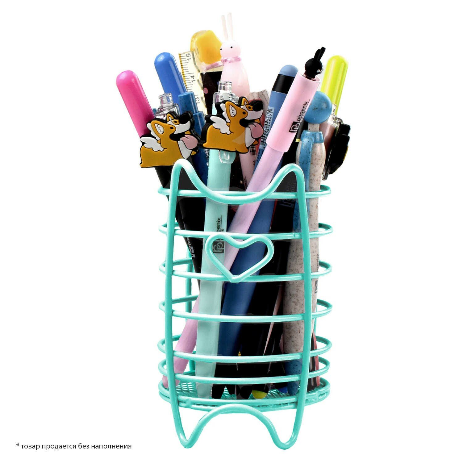 Подставка для канцелярских принадлежностей, арт.53960/ 50 МЯТНЫЙ КОТ (7,7х13х10 см, окрашенный чёрный металл, цвет: мятный, 1 отделение (-ия), ПЭТ-пакет).