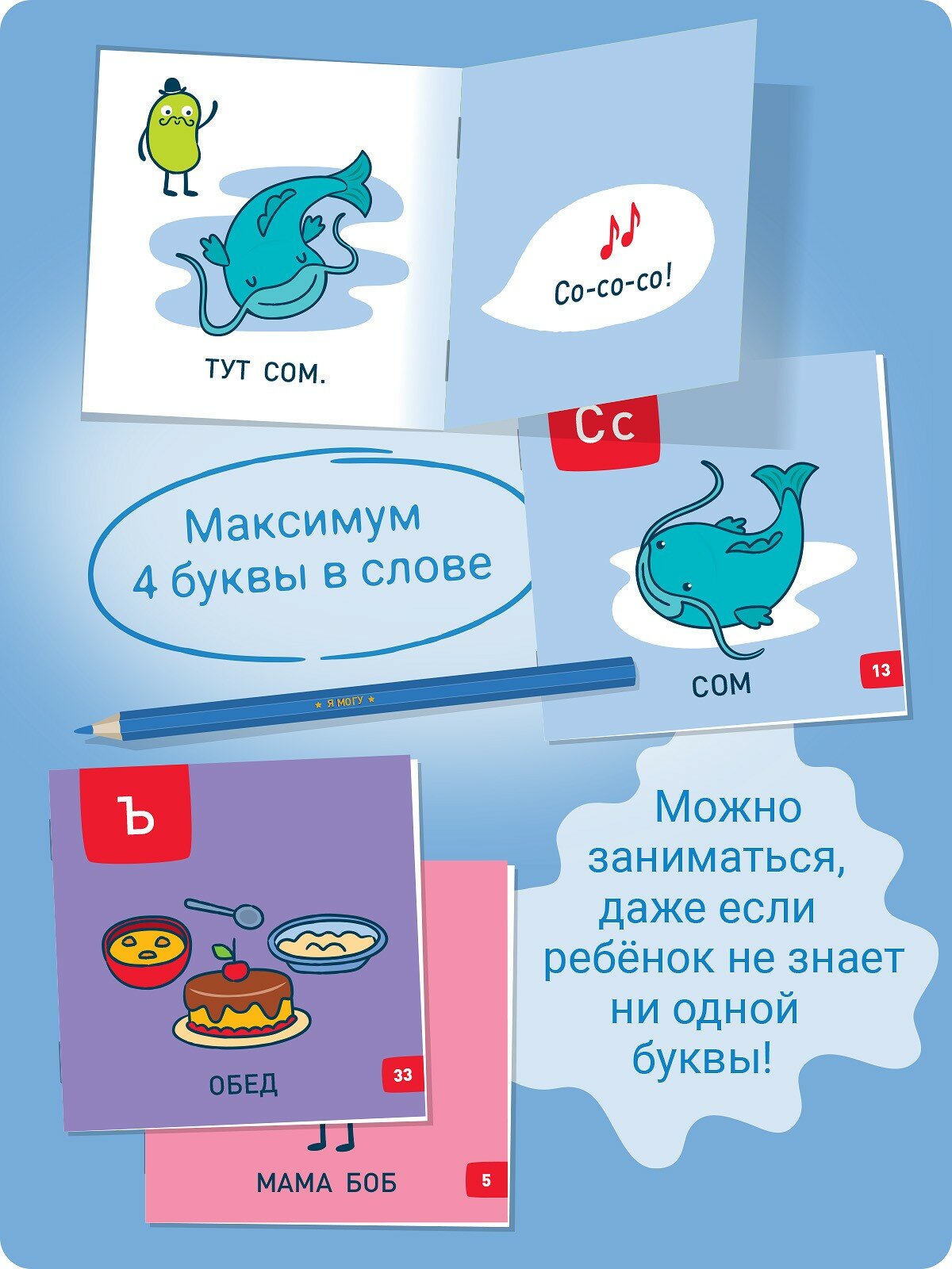 Когда малыш только начинает учиться читать, важно не отпугнуть его длинными и сложными словами. Поэтому в "Бобуквах" нет слов длиннее 4 букв.