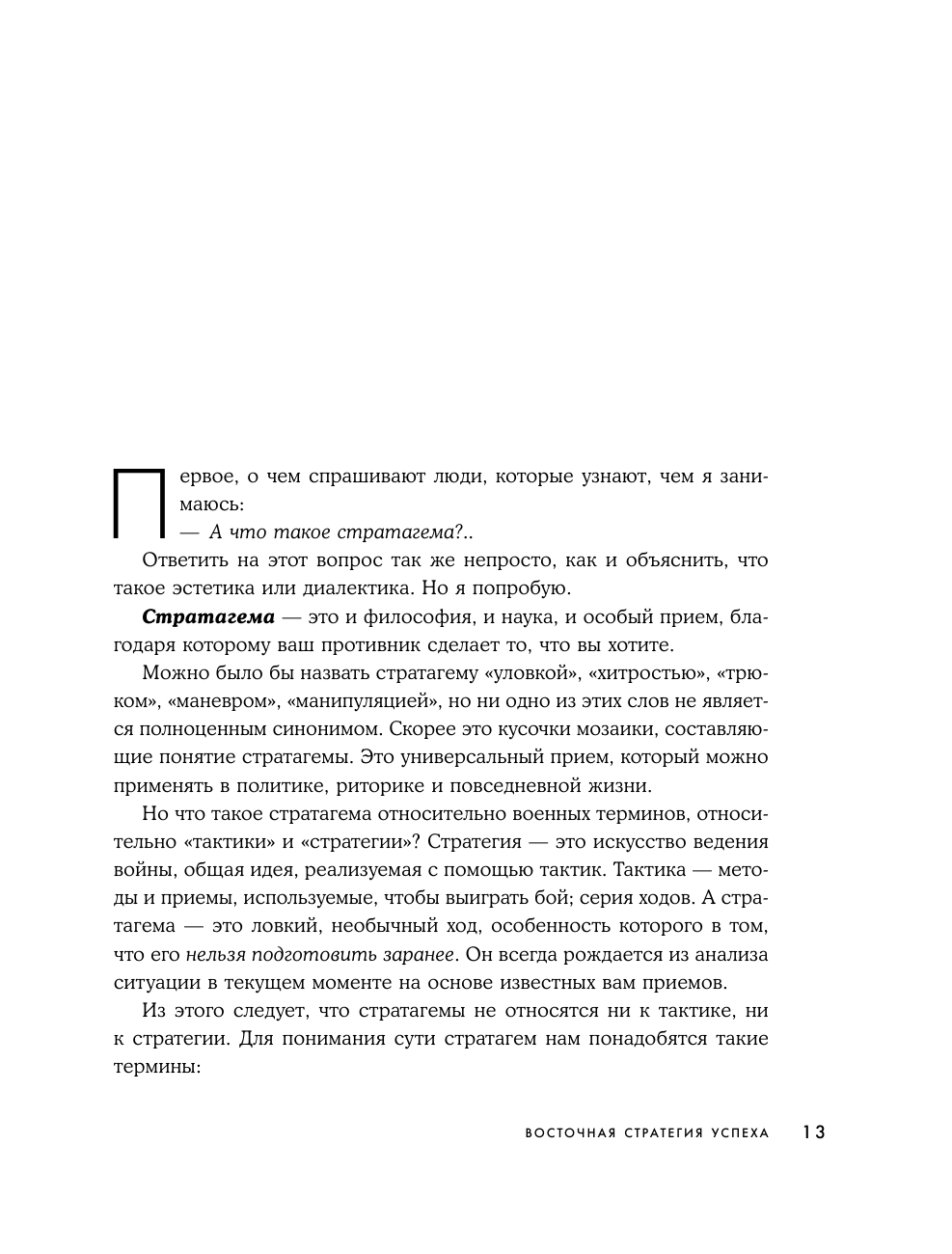 Первое, не настраивайтесь на слишком легкое чтиво. Это всё же не беллетристика и безвкусная жевачка для ума, чтобы хоть чем-то занять свободное время. Это больше учебник, да , во многом облегчённый, так как не все мы специалисты по династии Цинь и секретным военным тактикам древнего Востока, но , что удивительно, всё это прекрасно работает и в настоящее время и зачастую практически без адаптации.