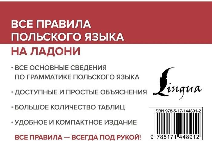 На сегодняшний день товар «Книга: Все правила польского языка на ладони (Анджей Щербацкий); Издательство АСТ, 2021» можно купить с кешбеком в 4 магазинах: book24, ЛитРес, Буквоед, Читай-город