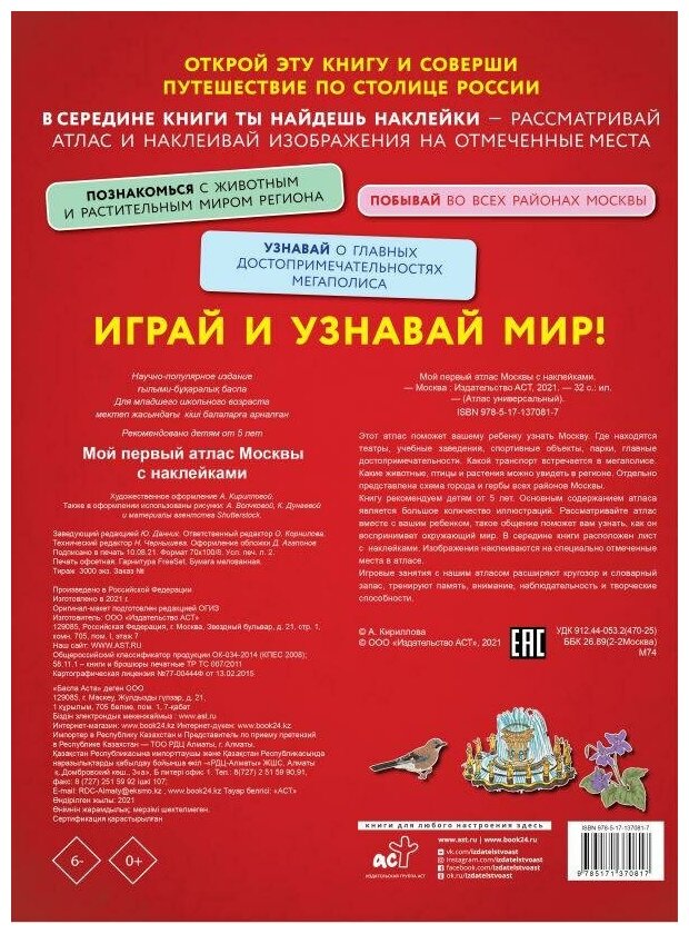 Мой первый атлас Москвы с наклейками (Корнилова О. (ред.)); ИЗДАТЕЛЬСТВО "АСТ", 2021