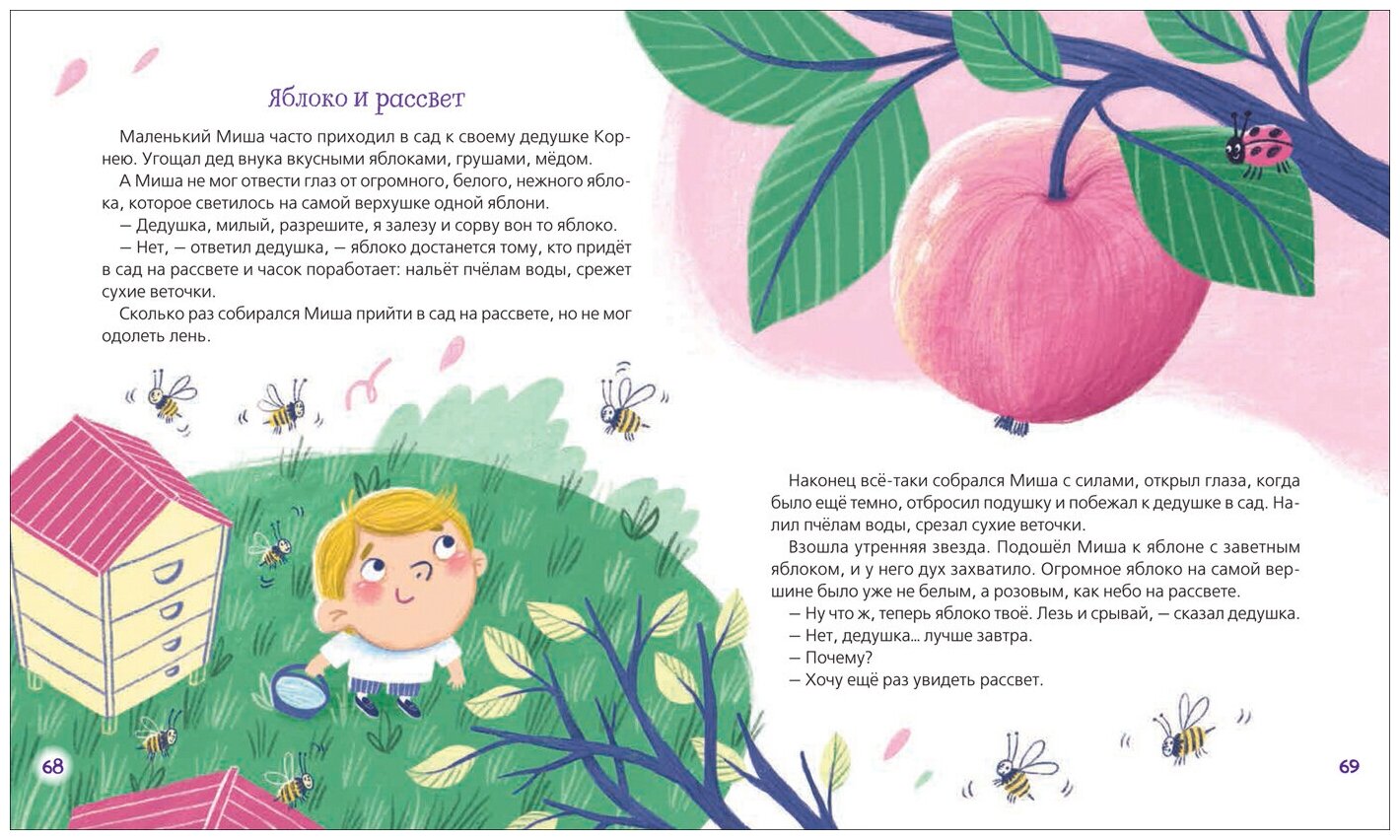 Очень интересная книга для малышей, рассказы короткие, но очень поучительные, юные читатели научатся различать добро и зло, как хорошо не быть жадным, быть великодушным. В книге 72 рассказа, на каждой странице есть веселые и яркие иллюстрации, страницы плотные, шрифт четкий, твердая обложка, качество книги очень хорошее.