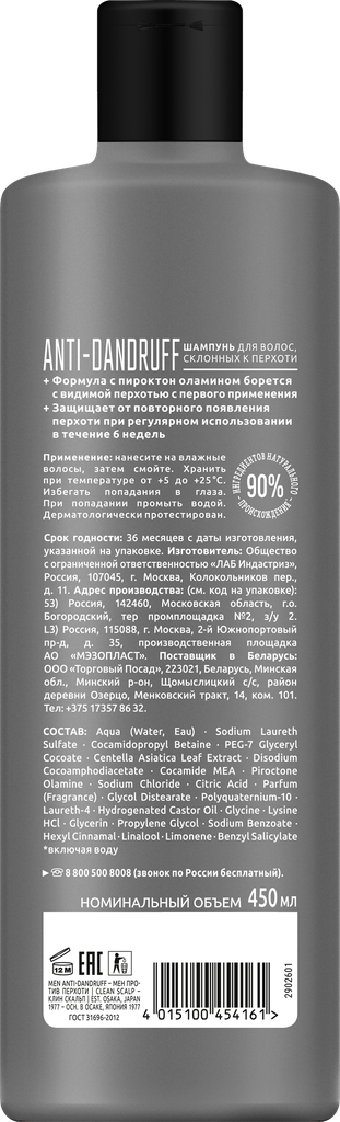 | Состав | Aqua (Water; Eau); Sodium Laureth Sulfate; Cocamidopropyl Betaine; Sodium Chloride; Zinc Pyrithione; Cocamide Mea; Citric Acid; PEG-7 Glyceryl Cocoate; Sodium Benzoate; Parfum; PEG-40 Hydrogenated Castor Oil; Hydrogenated Castor Oil; Dimethicone; Polyquaternium-7; PEG-12 Dimethicone; Niacinamide; Panthenol; Guar Hydroxypropyltrimonium Chloride; Prunus Armeniaca Kernel Oil; Hexyl Cinnamal; Propylene Glycol; Croscarmellos; Sodium Polynaphthalenesulfonate; Benzyl Salicylate; PEG-14M; Linalool. |