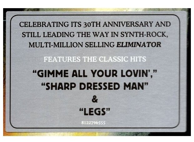 Список композиций:A1 Gimme All Your Lovin' A2 Got Me Under Pressure A3 Sharp Dressed Man A4 I Need You Tonight A5 I Got The Six B1 Legs B2 Thug B3 TV Dinners B4 Dirty Dog B5 If I Could Only Flag Her Down B6 Bad Girl Компании и т. п. Phonographic Copyright (p) – Warner Bros. Records Inc. Copyright (c) – Warner Bros. Records Inc. Published By – Hamstein Music Co. Marketed By – Warner Strategic Marketing Manufactured By – Optimal Media GmbH – BD13202 Lacquer Cut At – Optimal Media GmbH Над релизом работали Artwork [Artwork Coordination] – Bob Alford Bass – Dusty Hill Drums – Frank Beard Engineer – Bob Ludwig, Terry Manning Guitar – Billy Gibbons Illustration [Cover Illustration] – Tom Hunnicut Lacquer Cut By – HL (2) (tracks: A1 to A5), MK (11) (tracks: B1 to B6) Producer – Bill Ham Vocals – Billy Gibbons, Dusty Hill Written-By – Gibbons*, Hill*, Beard