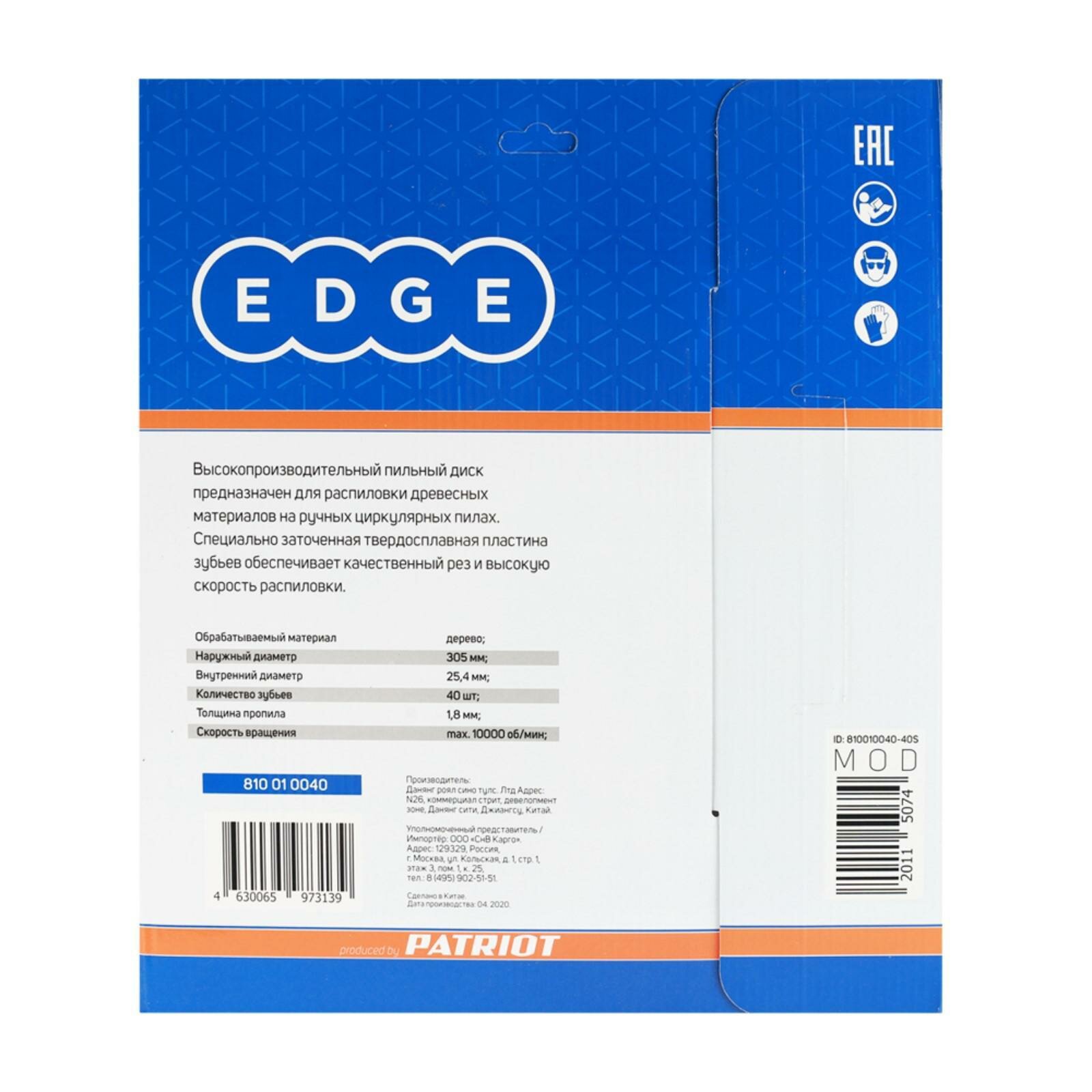 Диск пильный Patriot EDGE 305x40x25,4