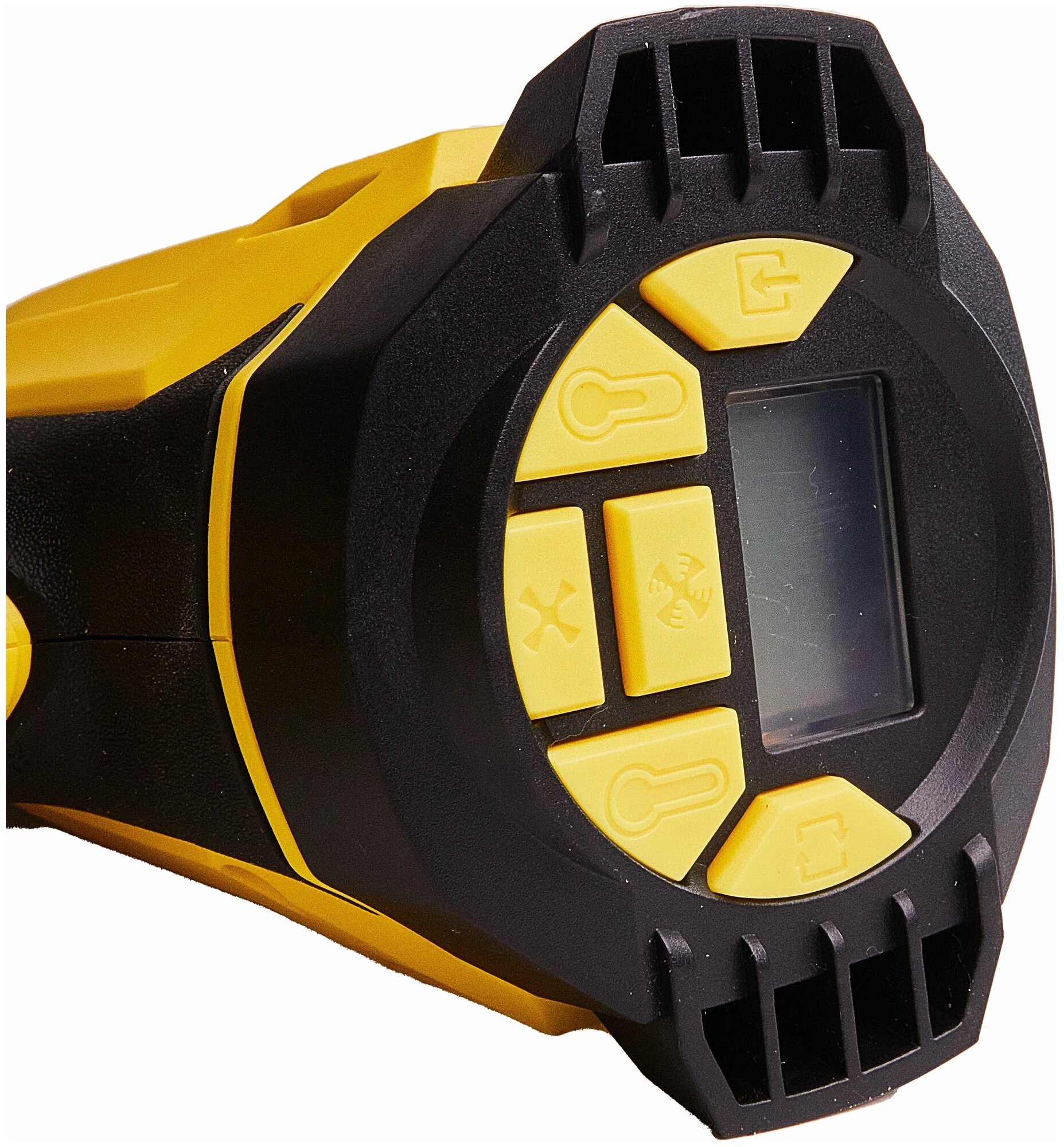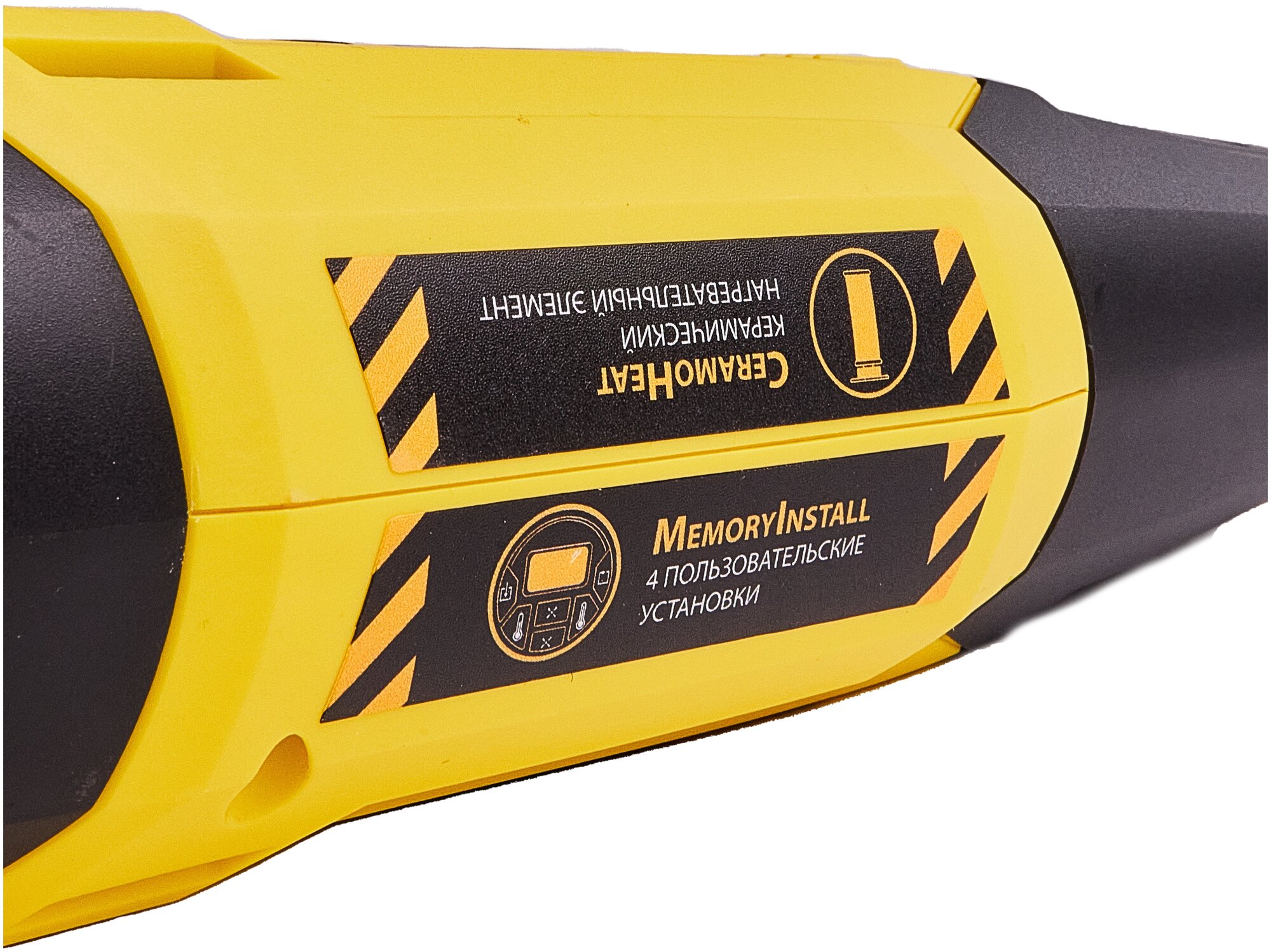 Фен имеет широкий диапазон температуры с двумя режимами настройки от 50 до 650 градусов, а также воздушный поток - 250-500 л / мин. Удобное расположение переключателя позволяет легко переключать режимы даже во время работы. Основные детали выполнены из стойкого металла, а корпус из высококачественной термостойкой пластмассы. Инструмент устойчивый к износу и прослужит длительное время. Цифровой дисплей позволяет контролировать температуру и интенсивность потока воздуха. Прорезиненная рукоятка и небольшой вес устройства способствуют комфортному использованию инструмента без нагрузки на руки оператора.