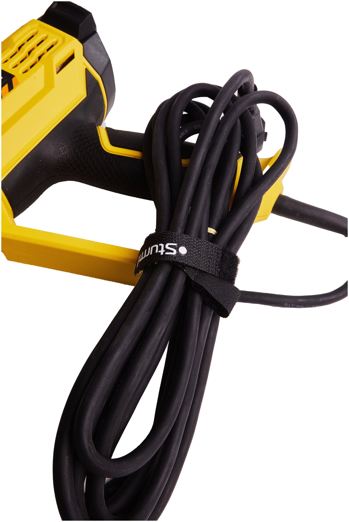 - Резиновый кабель с липучкой для удобства хранения, удлиненный до 4 метров, обеспечивает надежное питание инструмента в любых условиях.