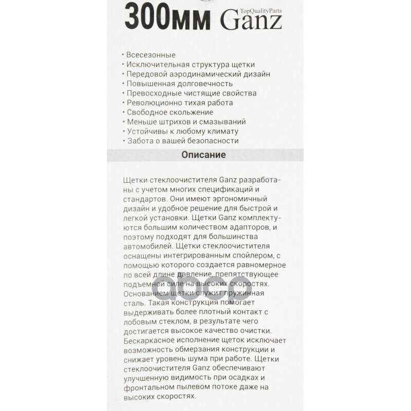 Щетка стеклоочистителя GANZ 300мм/12" бескаркасная GIS01011