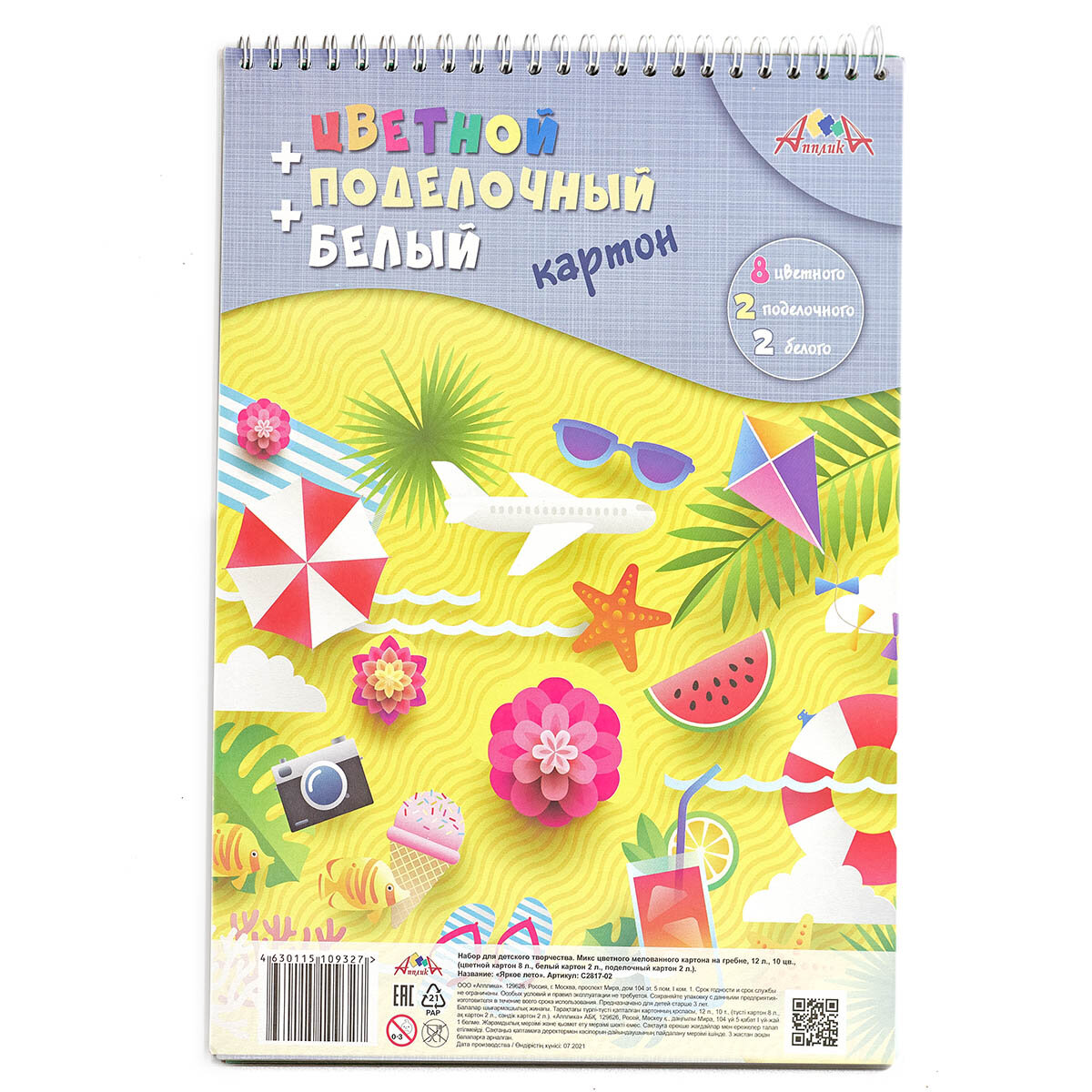 Картон цветной + белый + поделочный 12 листов 10 цветов гребень Яркое лето (С2817-02) АппликА