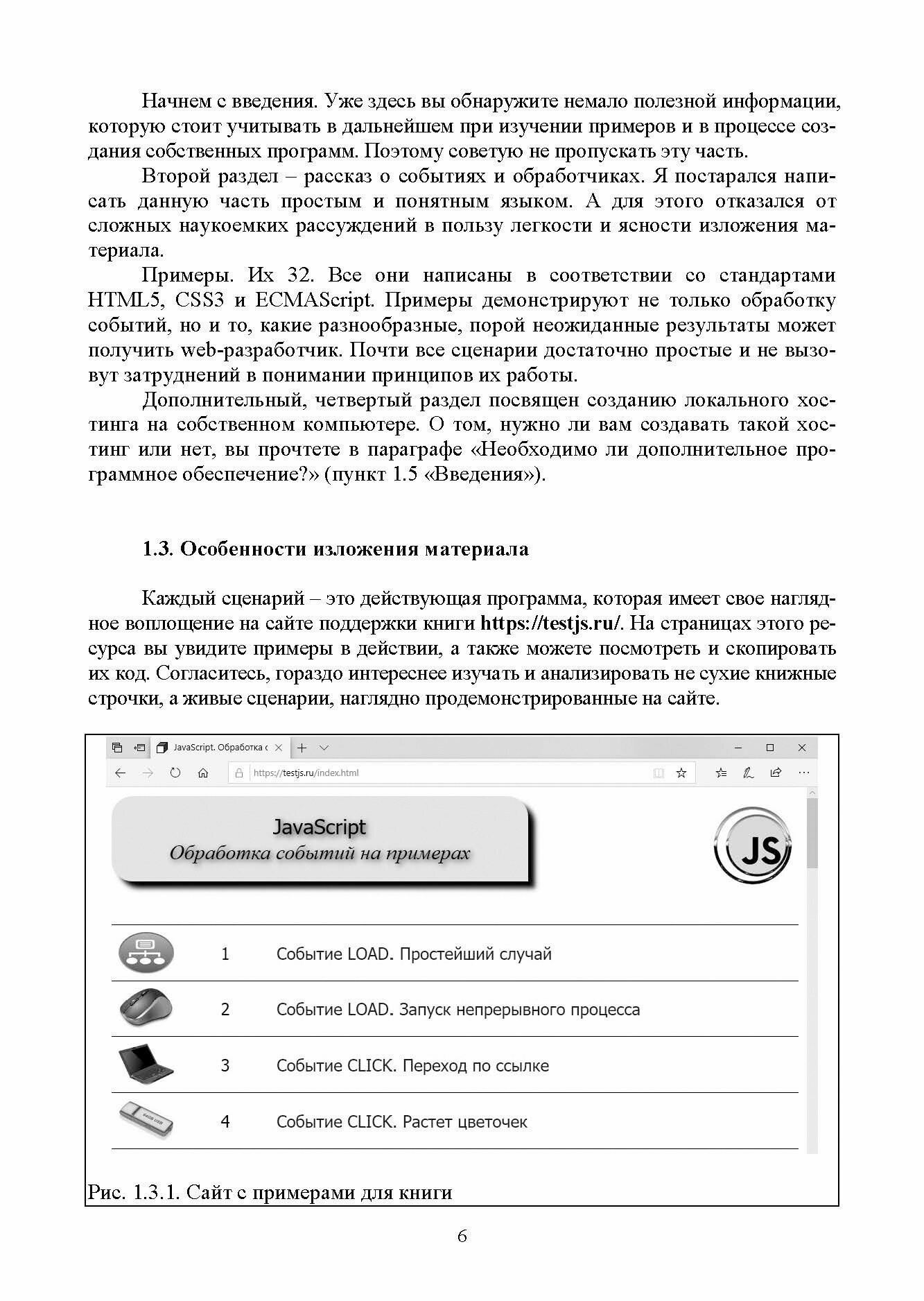 Книг по программированию на JavaScript написано много. Однако подавляющее большинство из них рассказывают об основах и синтаксисе языка. И непропорционально мало книг, которые бы позволили читателю перейти от теории к практике. А такой переход бывает очень непростым. Восполнить этот пробел призвана книга "JavaScript. Обработка событий на примерах". В ней рассказывается о различных событиях, происходящих на страницах сайтов, об обработчиках этих событий, о многообразии вариантов их применения, о технологии создания сценариев на JavaScript.