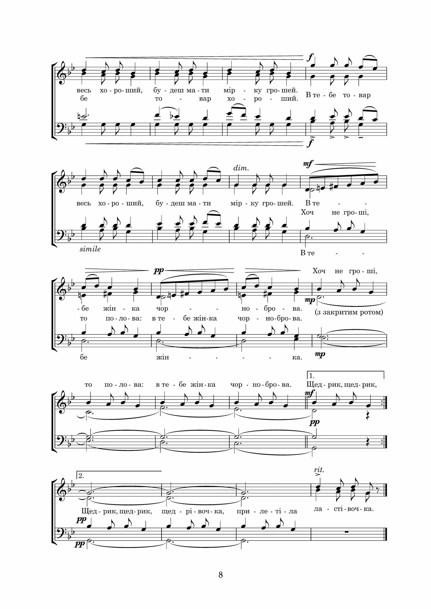 Его обработка народной песни "Щедрик" получила распространение как рождественская песня "Carol of the Bells" и приобрела огромную популярность по всему миру. На основе народных песен композитор создавал самобытные хоровые миниатюры, ставшие жемчужиной в репертуаре многих коллективов. В издание вошли избранные обработки народных песен, оригинальные хоровые композиции, отдельные части из Литургии святого Иоанна Златоуста.