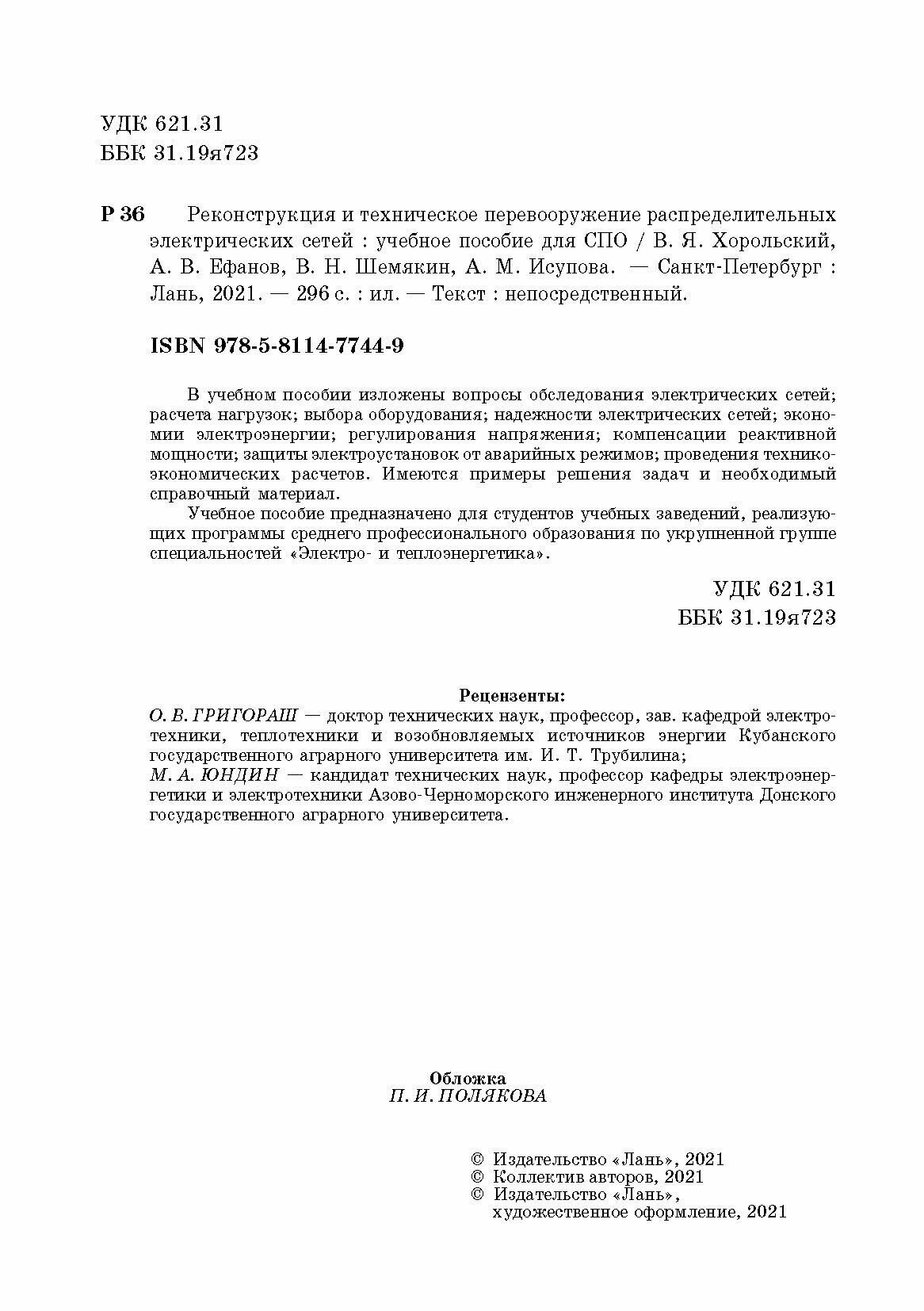 Сервис сравнения цен СкидкаГИД предлагает сравнить цены на товар «Книга: Реконструкция и техническое перевооружение распределительных электрических сетей Учебное пособие для СПО (Хорольский Владимир Яковлевич, Ефанов Алексей Валерьевич, Шемякин Виталий Николаевич, Исупова Александра Михайловна); Лань, 2021»