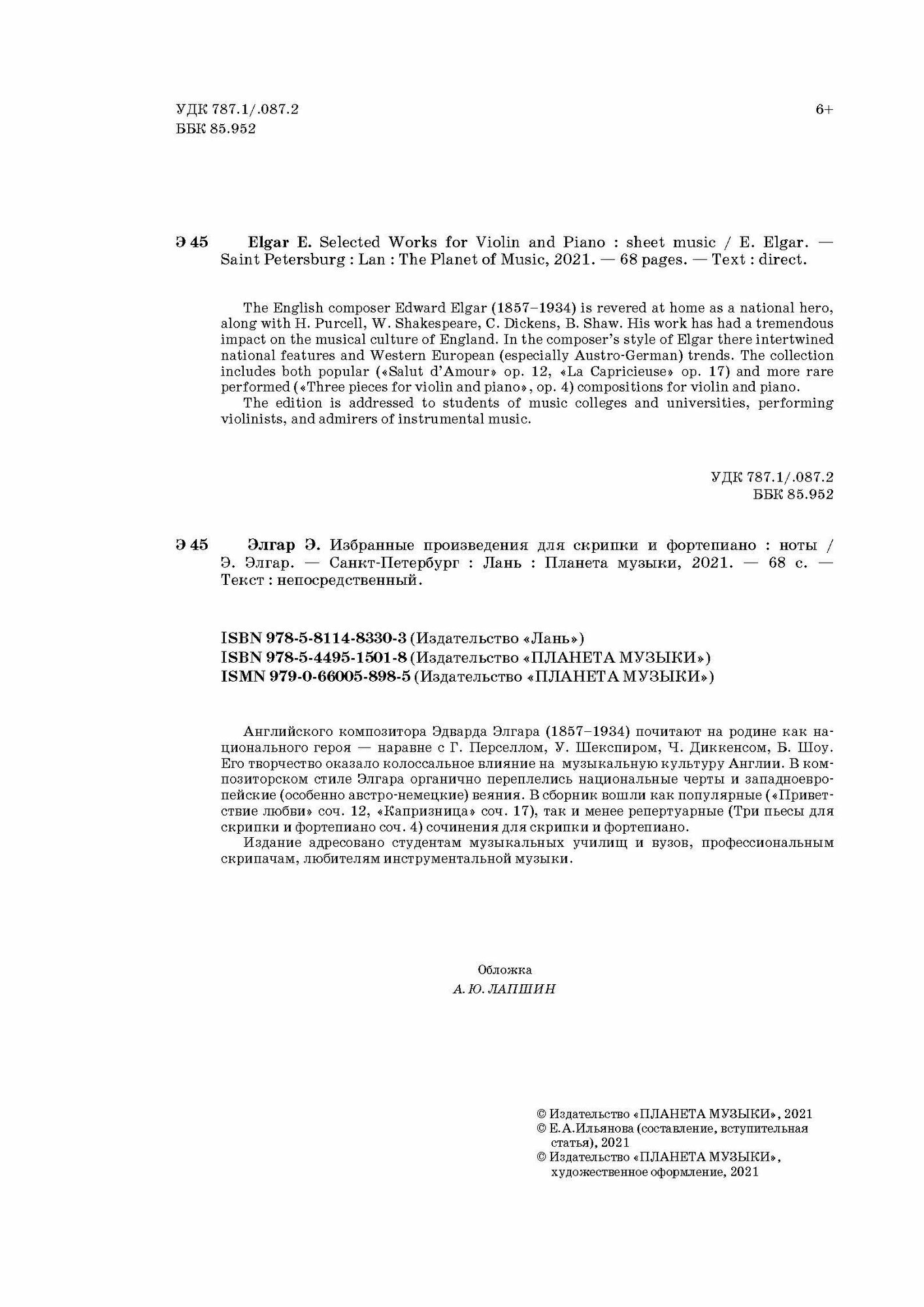 Избранные произведения для скрипки и фортепиано Ноты (Эдвард Элгар); Издательство «Планета музыки», 2021