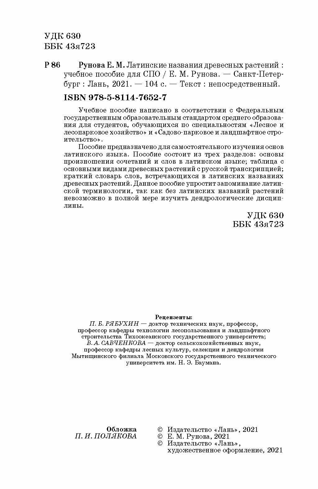 Латинские названия древесных растений Учебное пособие для СПО (Рунова Елена Михайловна); Лань, 2021
