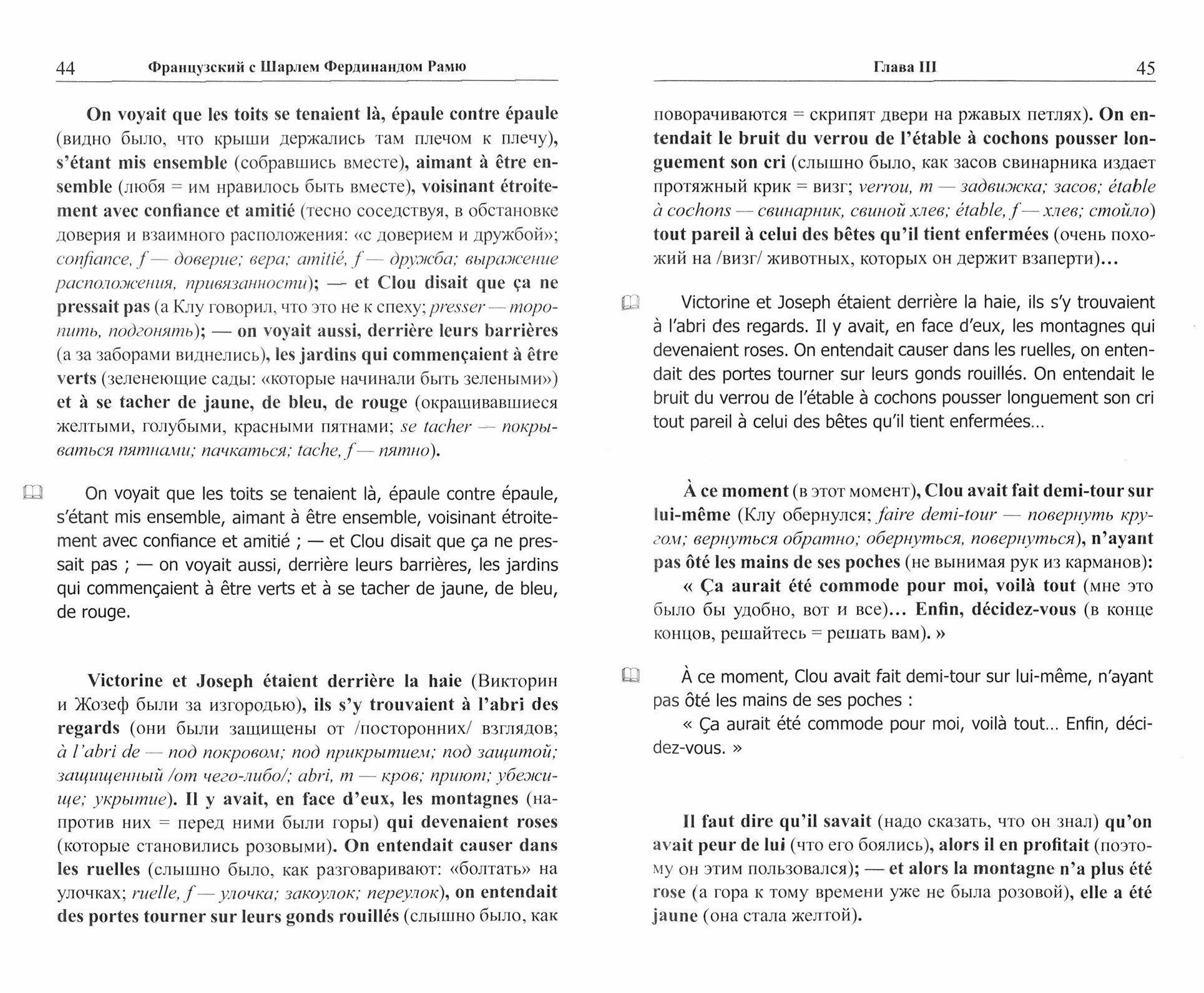 Роман выдающегося швейцарского писателя, классика европейской литературы Шарля Фердинанда Рамю (1878–1947) адаптирован в настоящем издании по методу обучающего чтения Ильи Франка: снабжены дословным переводом на русский язык и необходимым лексико-грамматическим комментарием (без упрощения текста оригинала).