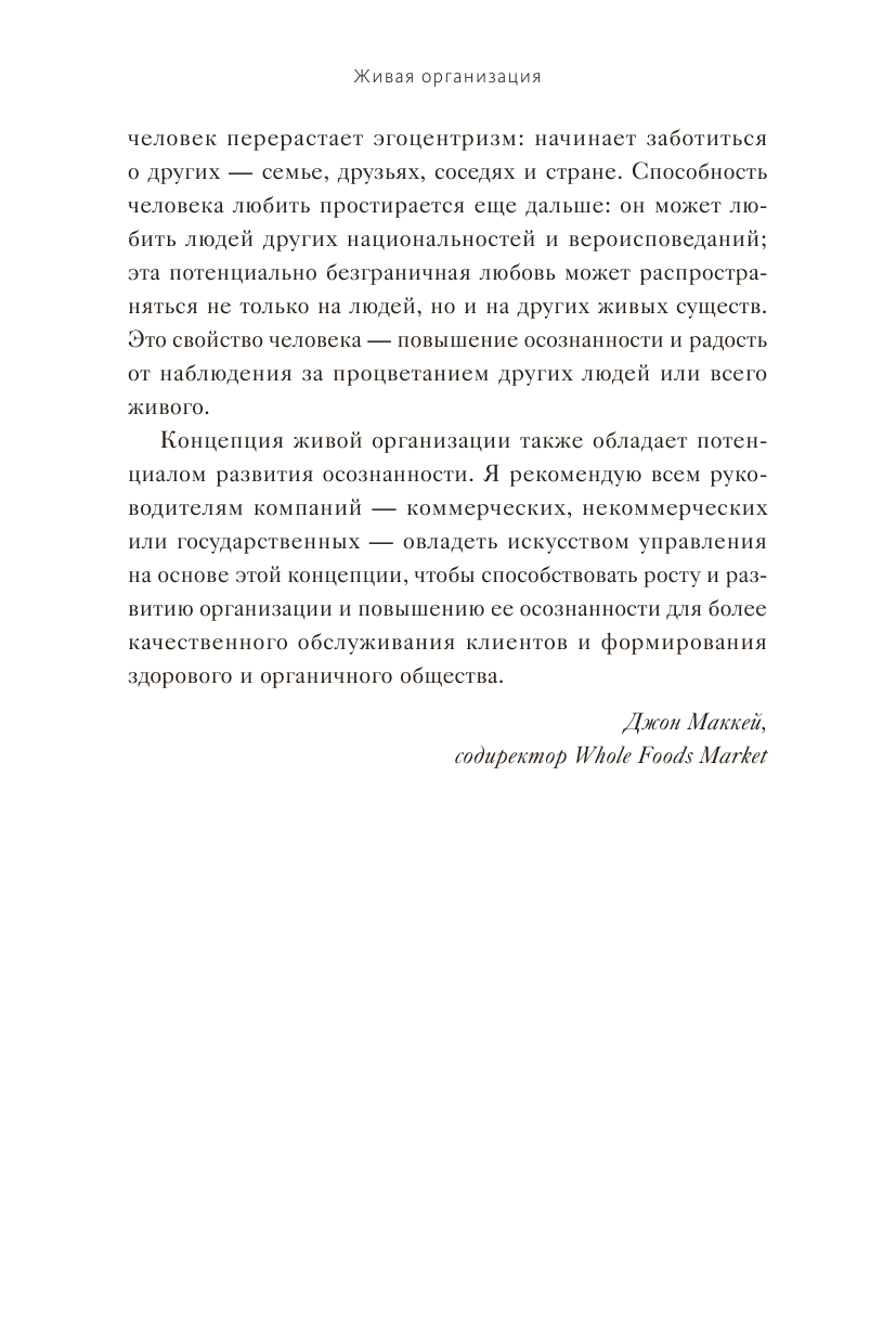 Прочитав эту книгу, вы посмотрите на свою организацию другими глазами: как на человека, который способен учиться, развиваться и перестраиваться самостоятельно, руководствуясь своими принципами и целями. Иначе за стремительными изменениями внешней среды вам не успеть.